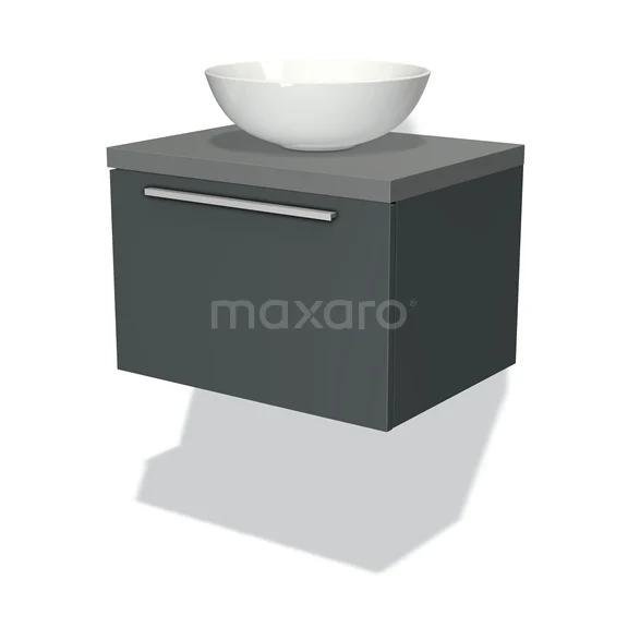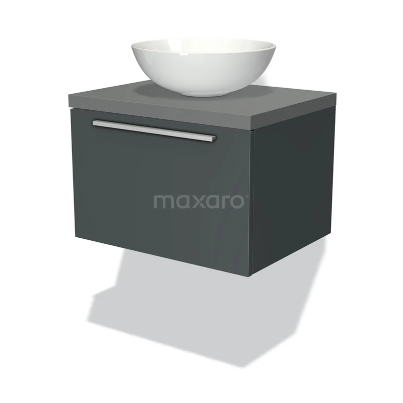 Modulo Plato Badmöbel mit Aufsatzwaschbecken | 60 cm Dunkelgrau Flach front Mittelgrau blatt 1 Schublade