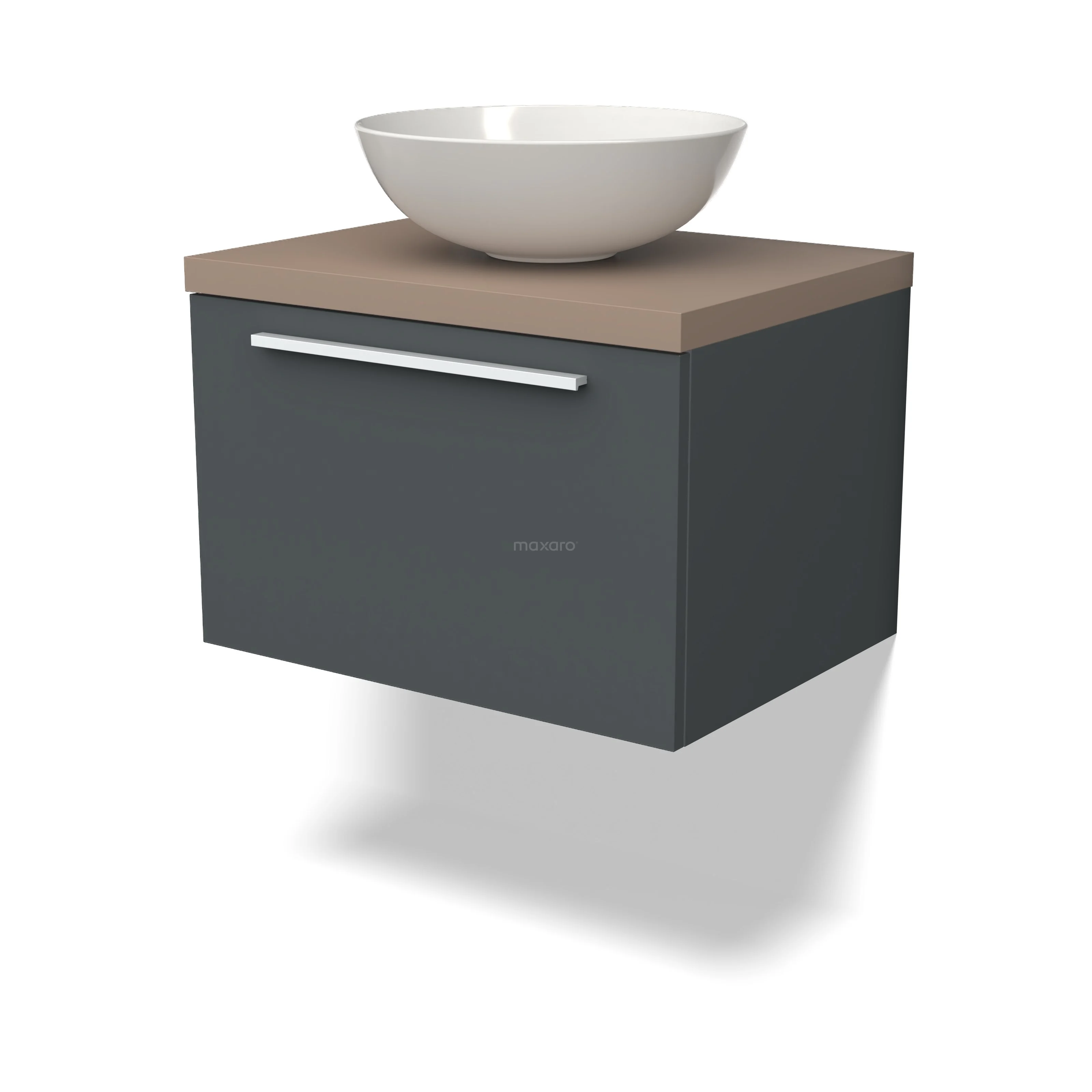 Modulo Plato Badmöbel mit Aufsatzwaschbecken | 60 cm Dunkelgrau Flach front Taupe blatt 1 Schublade