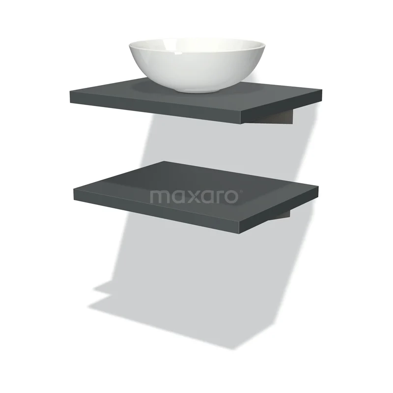 Modulo Plato Badmöbel mit Aufsatzwaschbecken | 60 cm Dunkelgrau front Dunkelgrau blatt 2 Waschtischplatten