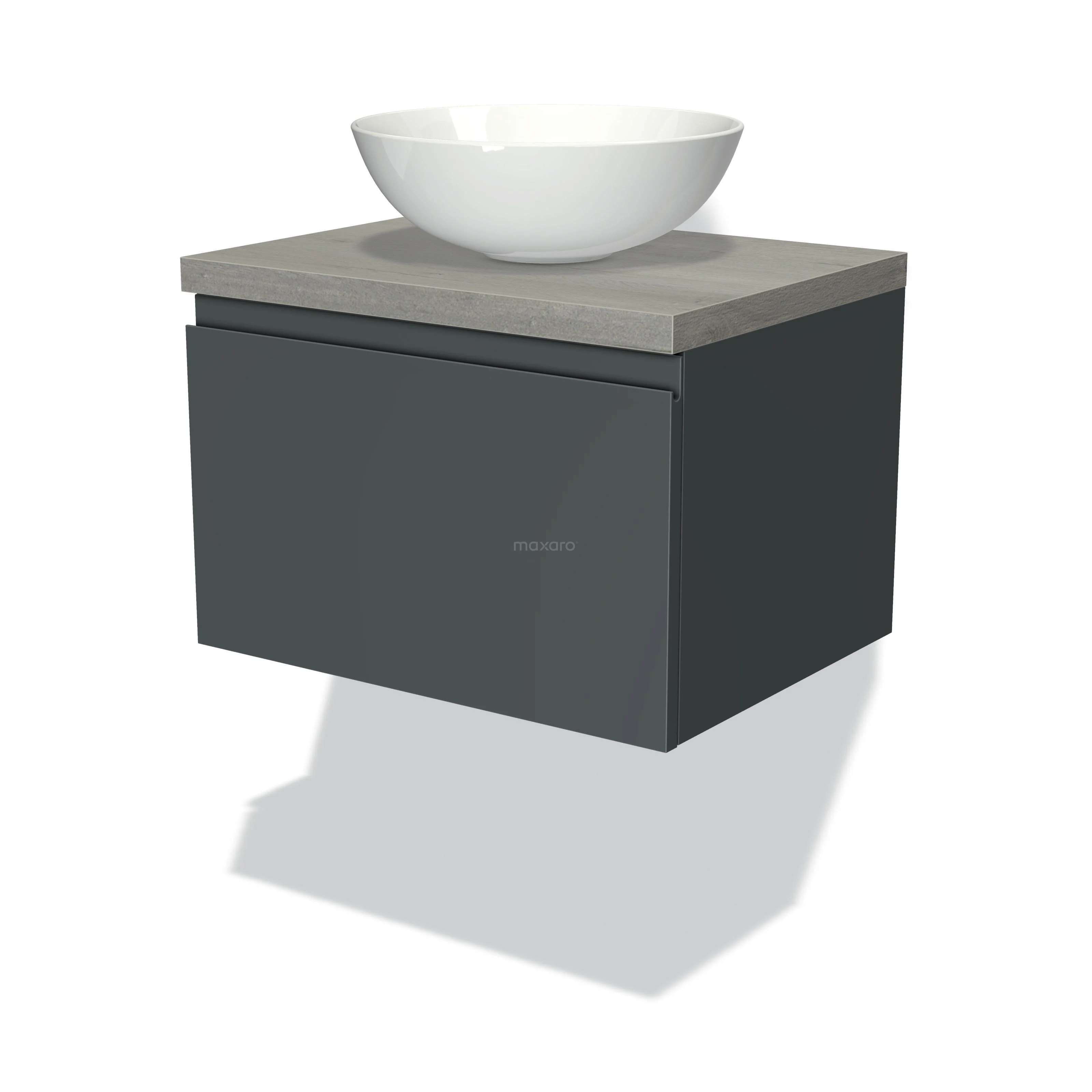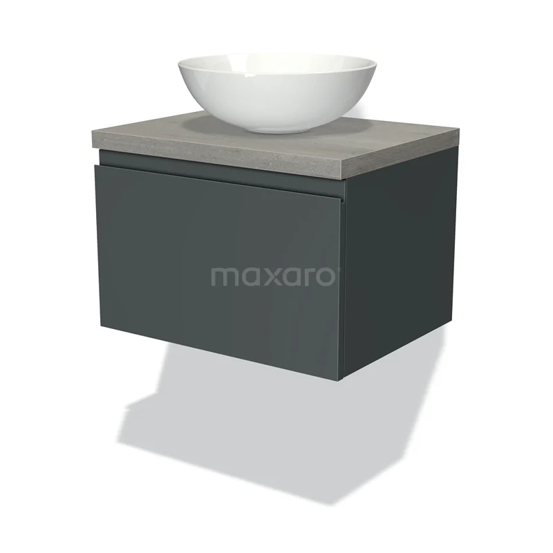 Modulo Plato Badmöbel mit Aufsatzwaschbecken | 60 cm Dunkelgrau Grifflos front Graue Eiche blatt 1 Schublade