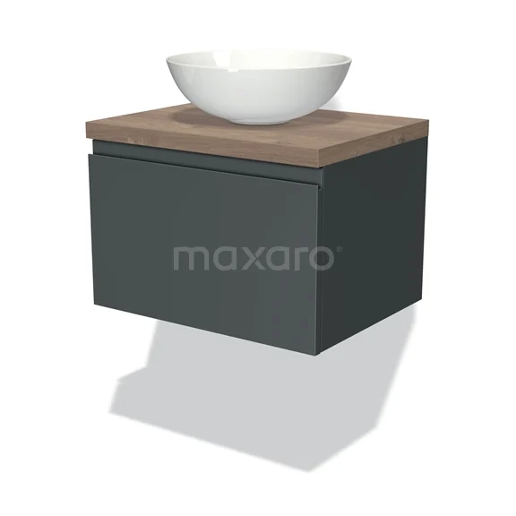 Modulo Plato Badmöbel mit Aufsatzwaschbecken | 60 cm Dunkelgrau Grifflos front Mittelbraune Eiche blatt 1 Schublade