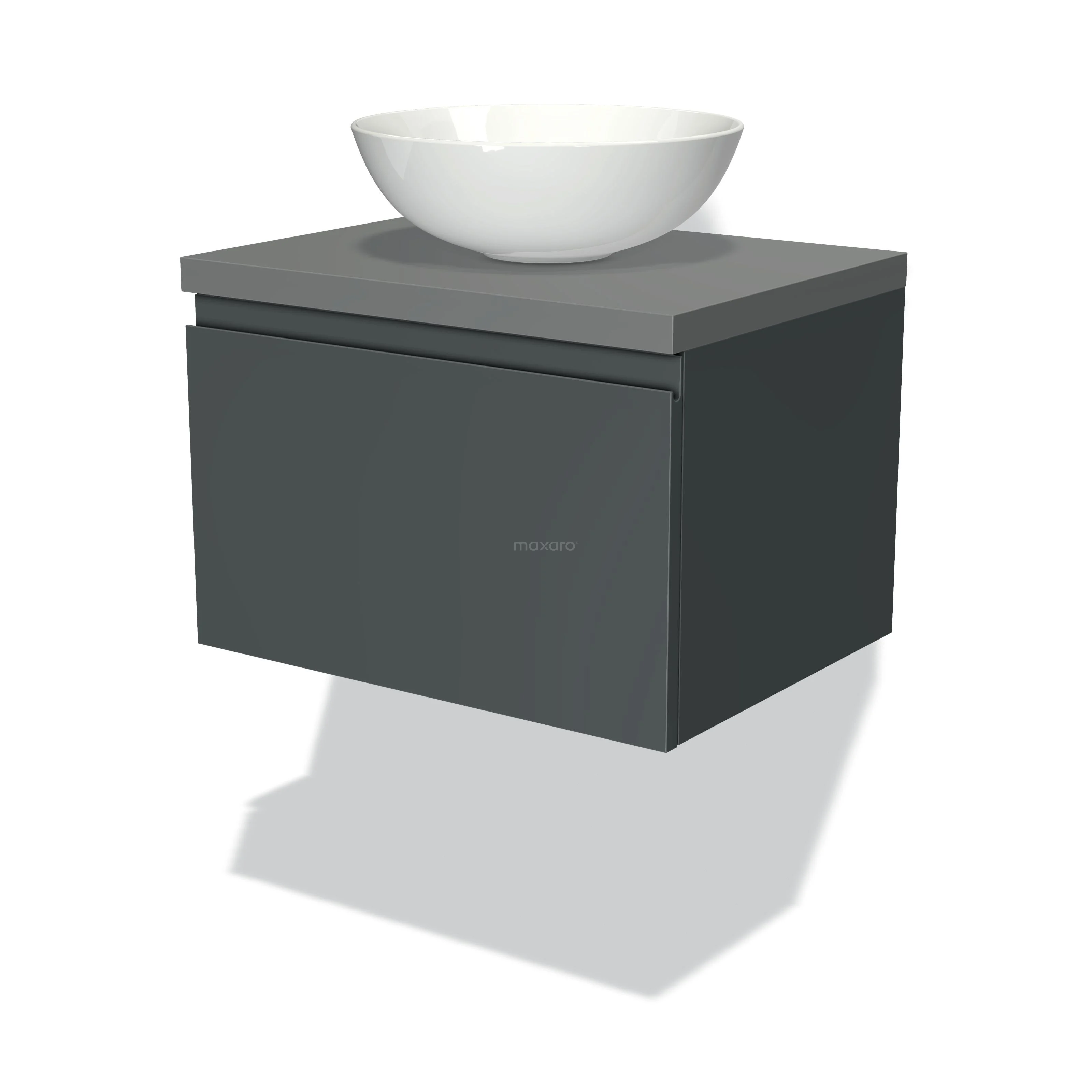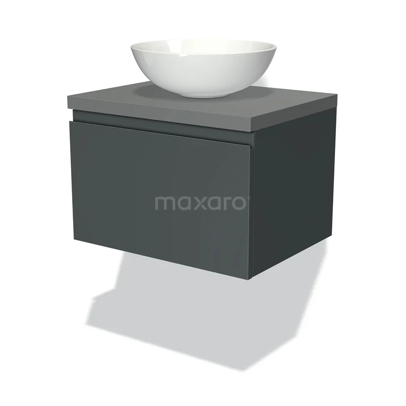 Modulo Plato Badmöbel mit Aufsatzwaschbecken | 60 cm Dunkelgrau Grifflos front Mittelgrau blatt 1 Schublade