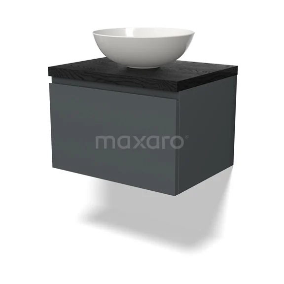 Modulo Plato Badmöbel mit Aufsatzwaschbecken | 60 cm Dunkelgrau Grifflos front Schwarze Eiche blatt 1 Schublade