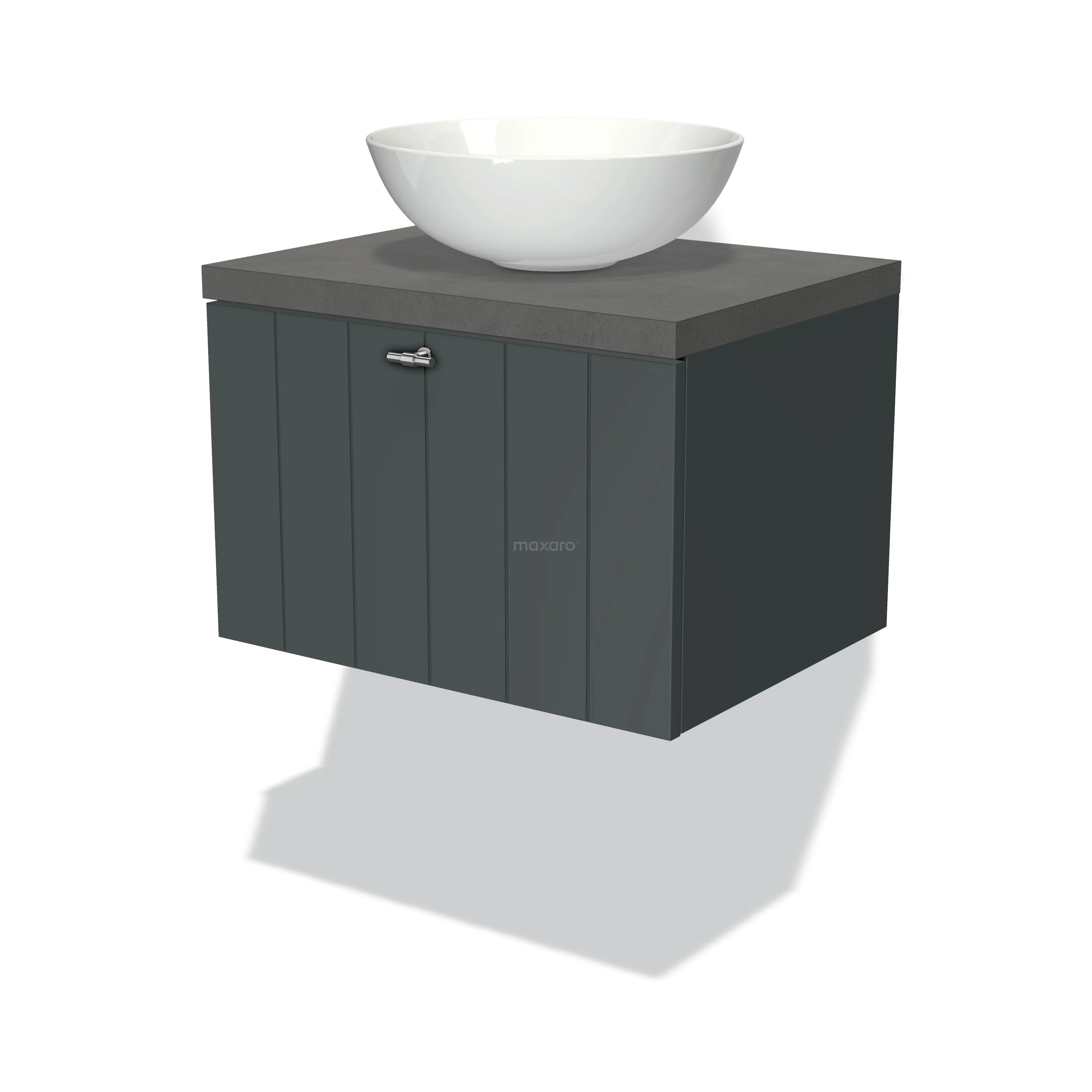 Modulo Plato Badmöbel mit Aufsatzwaschbecken | 60 cm Dunkelgrau Lamelle front Dunkelgrauer Beton blatt 1 Schublade
