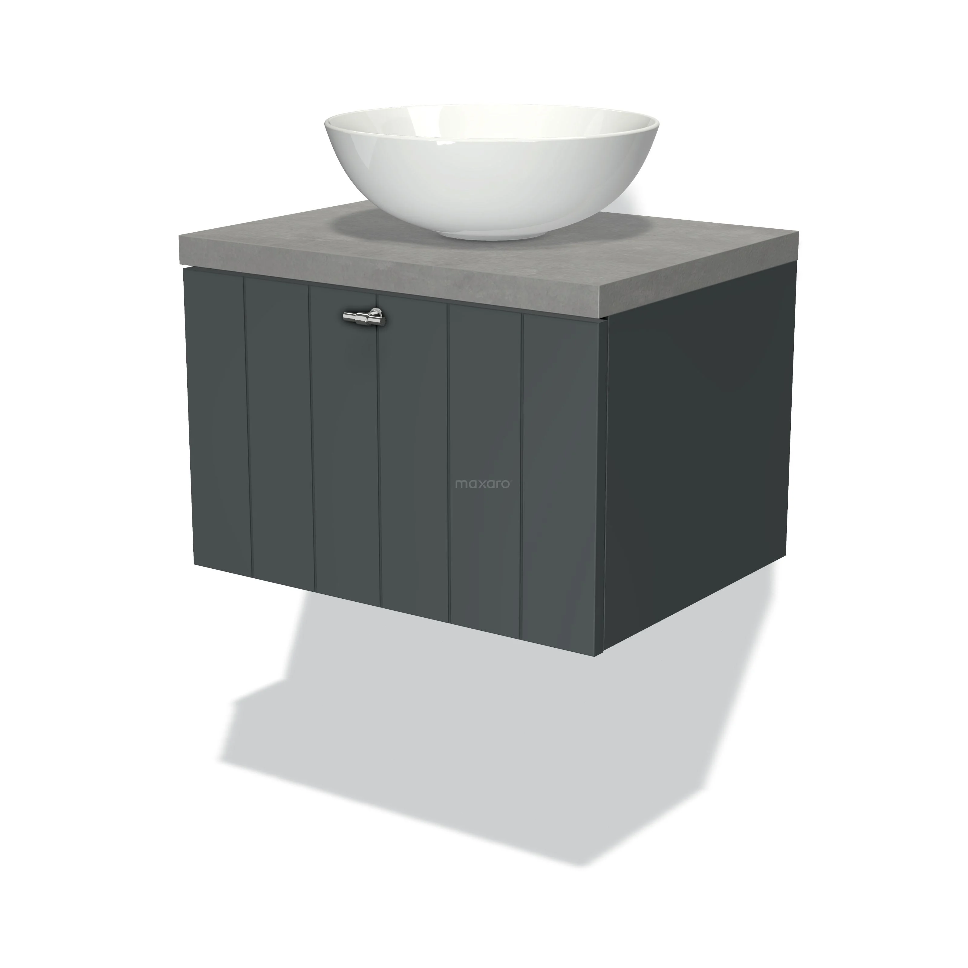 Modulo Plato Badmöbel mit Aufsatzwaschbecken | 60 cm Dunkelgrau Lamelle front Hellgrauer Beton blatt 1 Schublade