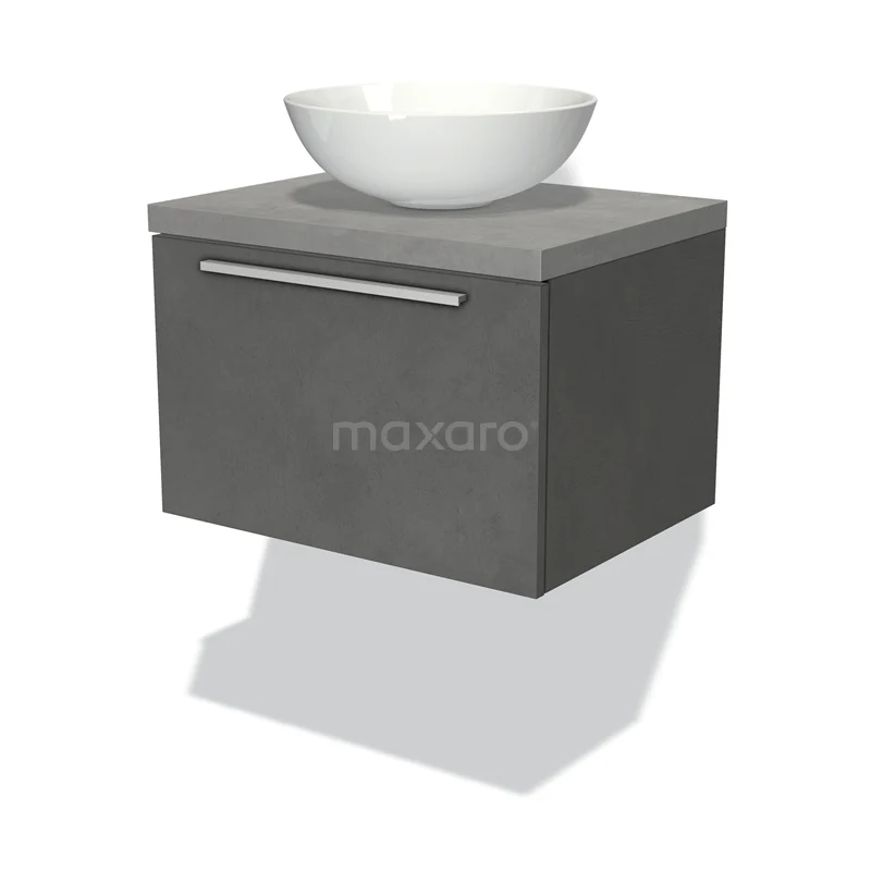 Modulo Plato Badmöbel mit Aufsatzwaschbecken | 60 cm Dunkelgrauer Beton Flach front Hellgrauer Beton blatt 1 Schublade