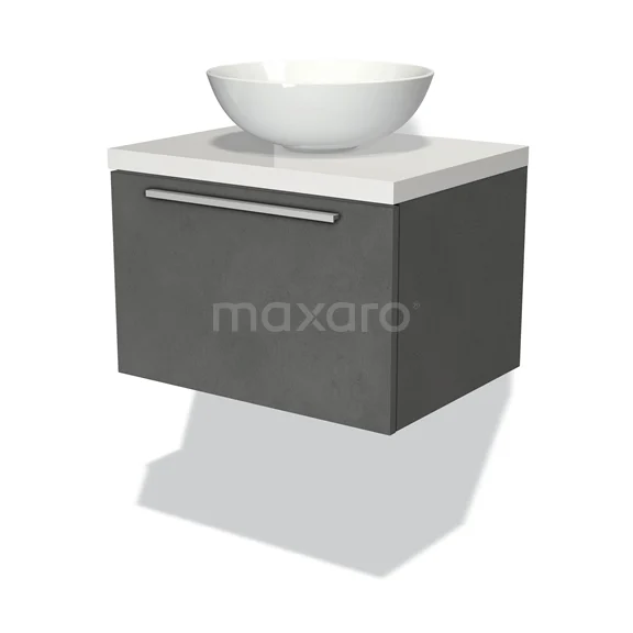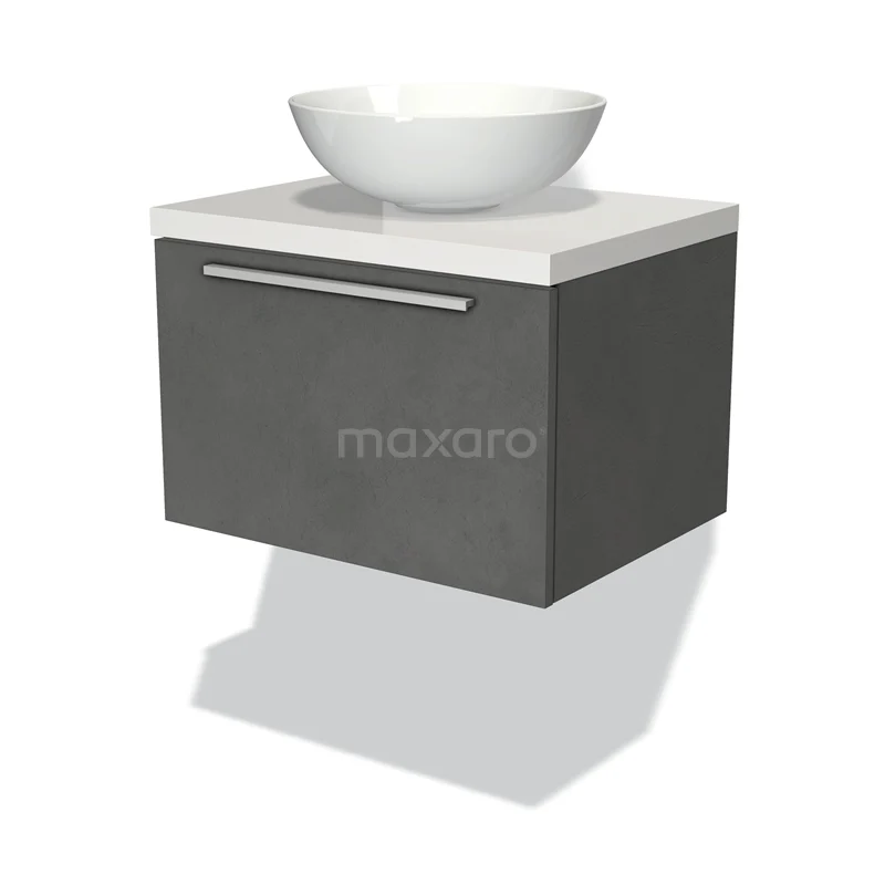 Modulo Plato Badmöbel mit Aufsatzwaschbecken | 60 cm Dunkelgrauer Beton Flach front Hochglanz Weiß blatt 1 Schublade