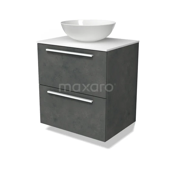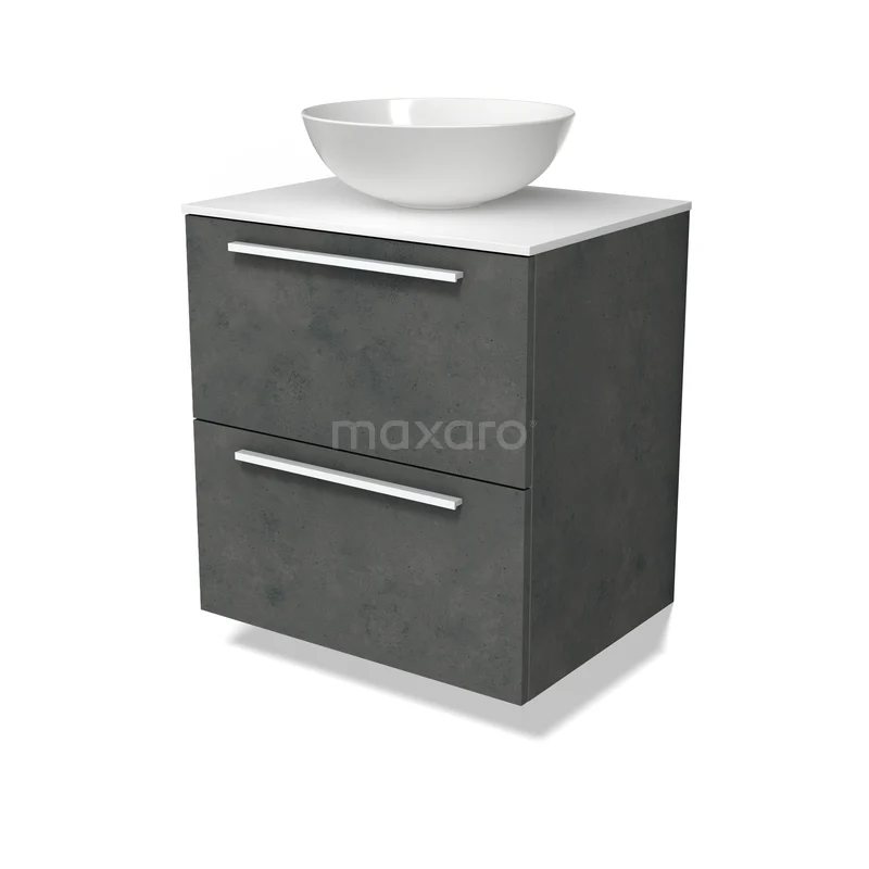Modulo Plato Badmöbel mit Aufsatzwaschbecken | 60 cm Dunkelgrauer Beton Flach front Solid Surface blatt 2 übereinanderliegende Schubladen