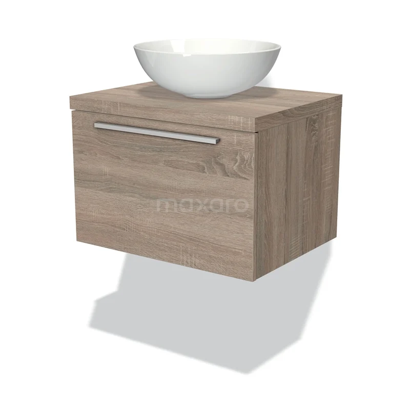 Modulo Plato Badmöbel mit Aufsatzwaschbecken | 60 cm Eiche Flach front Eiche blatt 1 Schublade