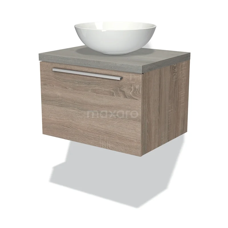 Modulo Plato Badmöbel mit Aufsatzwaschbecken | 60 cm Eiche Flach front Graue Eiche blatt 1 Schublade
