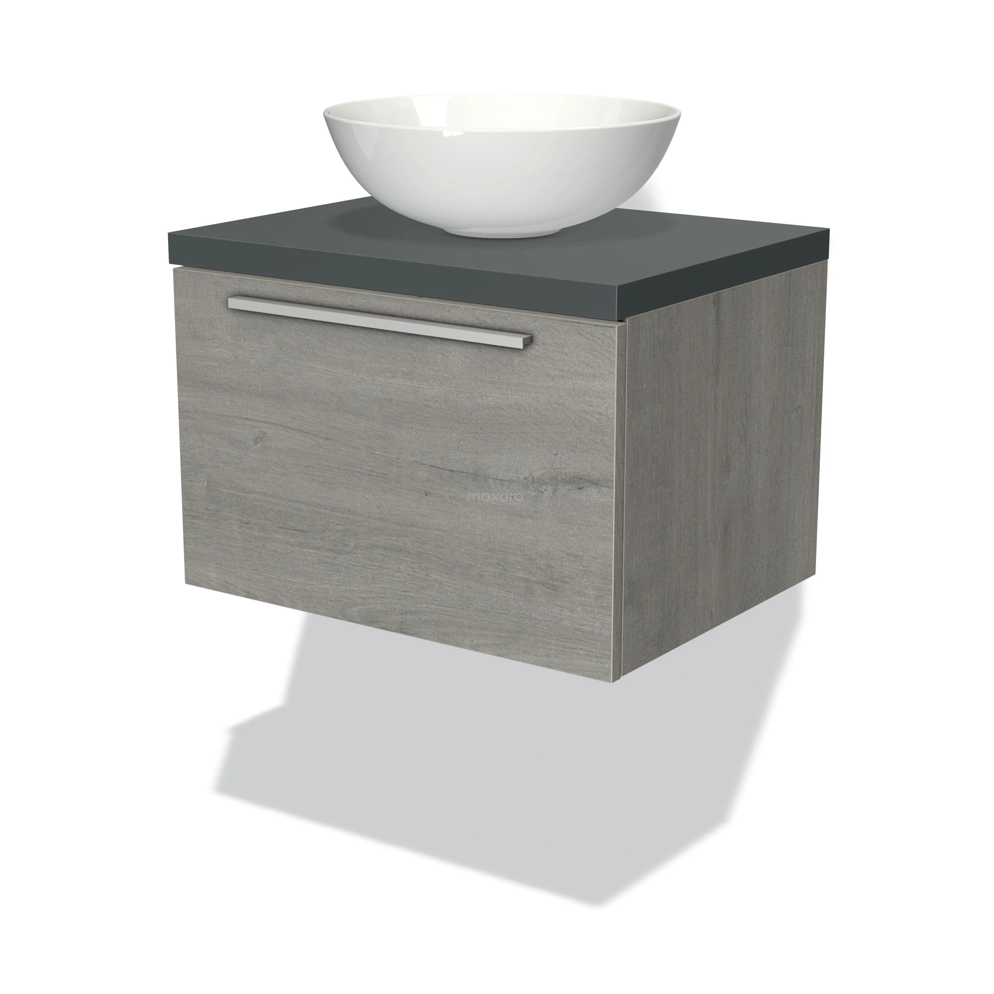 Modulo Plato Badmöbel mit Aufsatzwaschbecken | 60 cm Graue Eiche Flach front Dunkelgrau blatt 1 Schublade