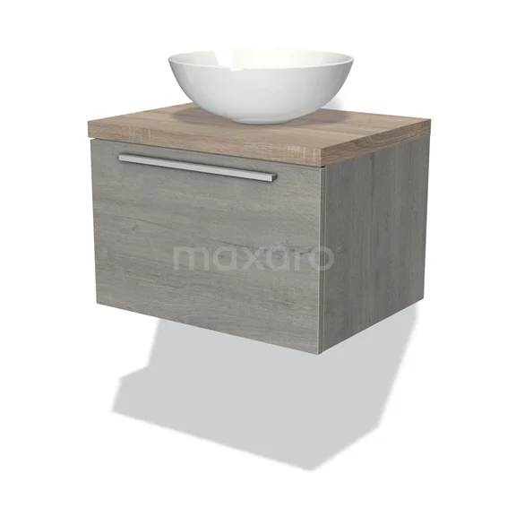 Modulo Plato Badmöbel mit Aufsatzwaschbecken | 60 cm Graue Eiche Flach front Eiche blatt 1 Schublade