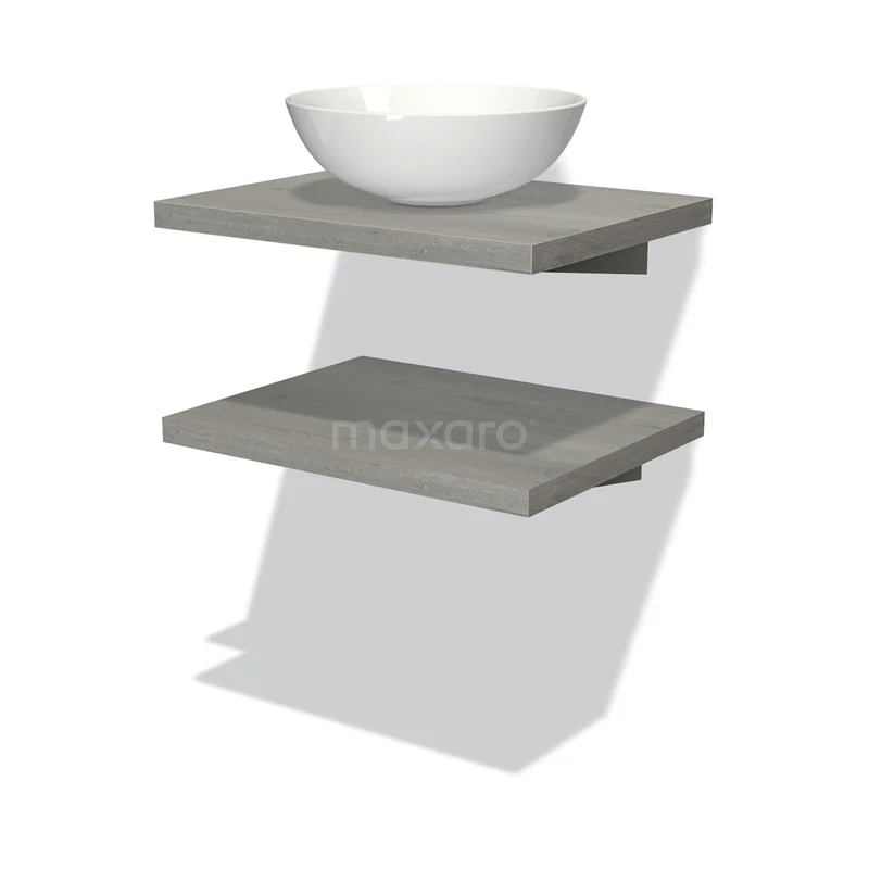 Modulo Plato Badmöbel mit Aufsatzwaschbecken | 60 cm Graue Eiche front Graue Eiche blatt 2 Waschtischplatten