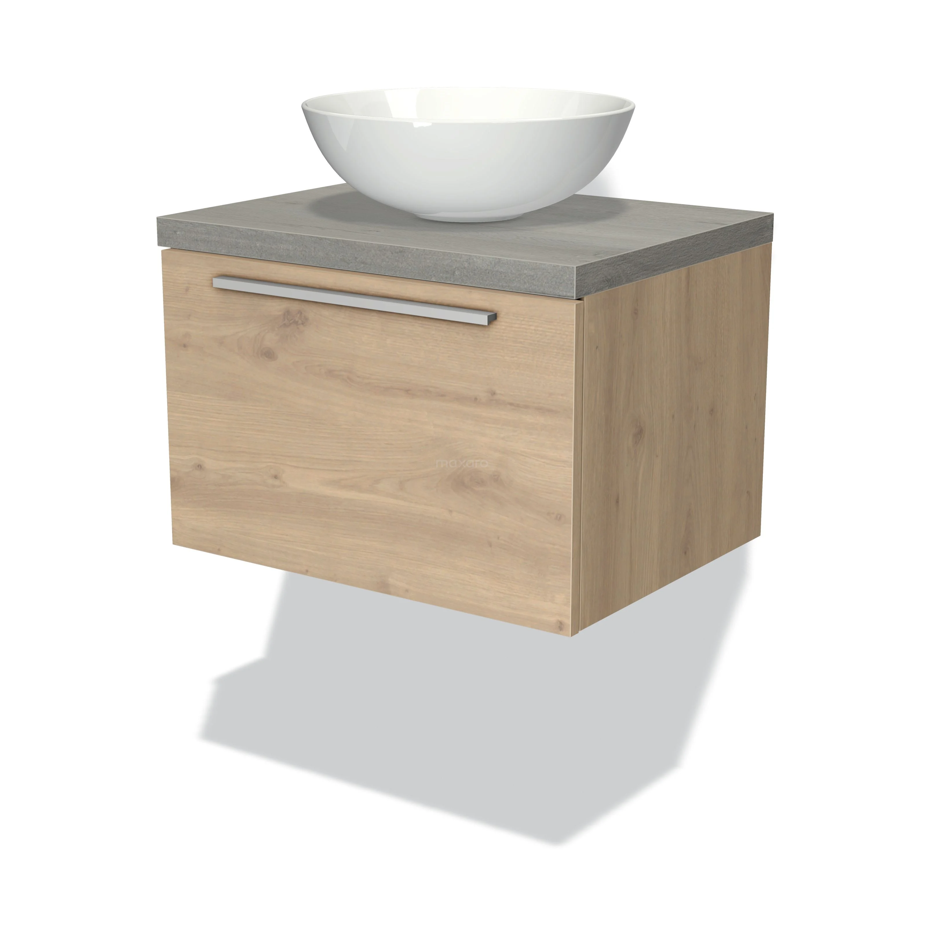 Modulo Plato Badmöbel mit Aufsatzwaschbecken | 60 cm Hellbraune Eiche Flach front Graue Eiche blatt 1 Schublade