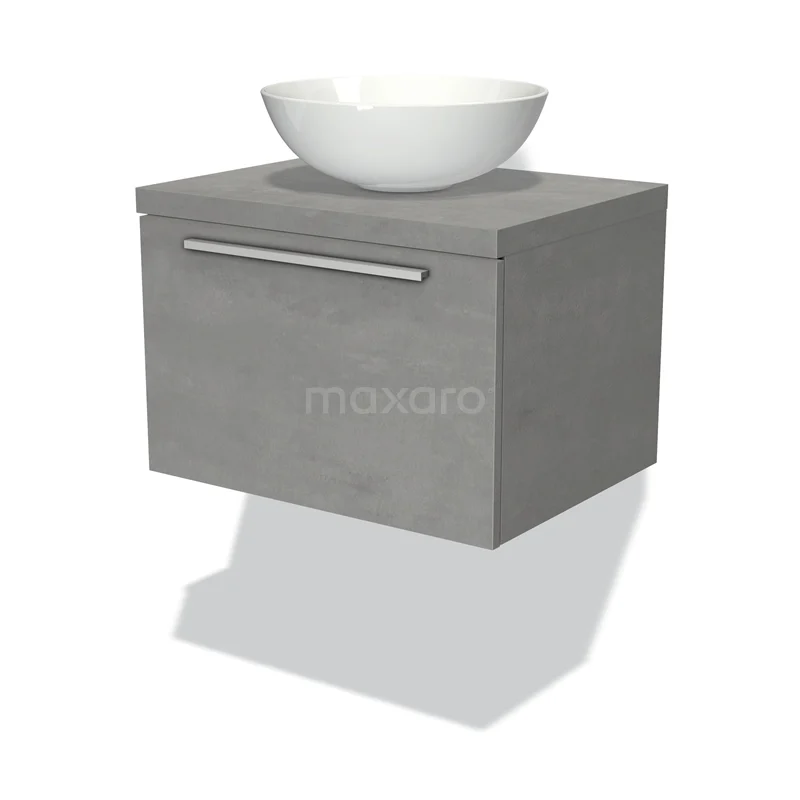 Modulo Plato Badmöbel mit Aufsatzwaschbecken | 60 cm Hellgrauer Beton Flach front Hellgrauer Beton blatt 1 Schublade