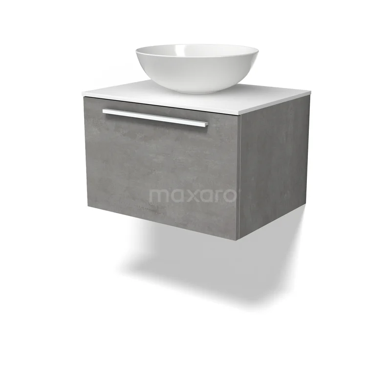 Modulo Plato Badmöbel mit Aufsatzwaschbecken | 60 cm Hellgrauer Beton Flach front Solid Surface blatt 1 Schublade