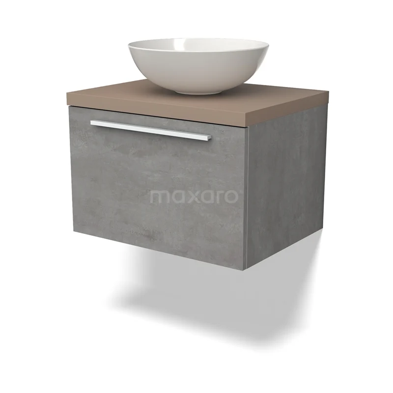 Modulo Plato Badmöbel mit Aufsatzwaschbecken | 60 cm Hellgrauer Beton Flach front Taupe blatt 1 Schublade