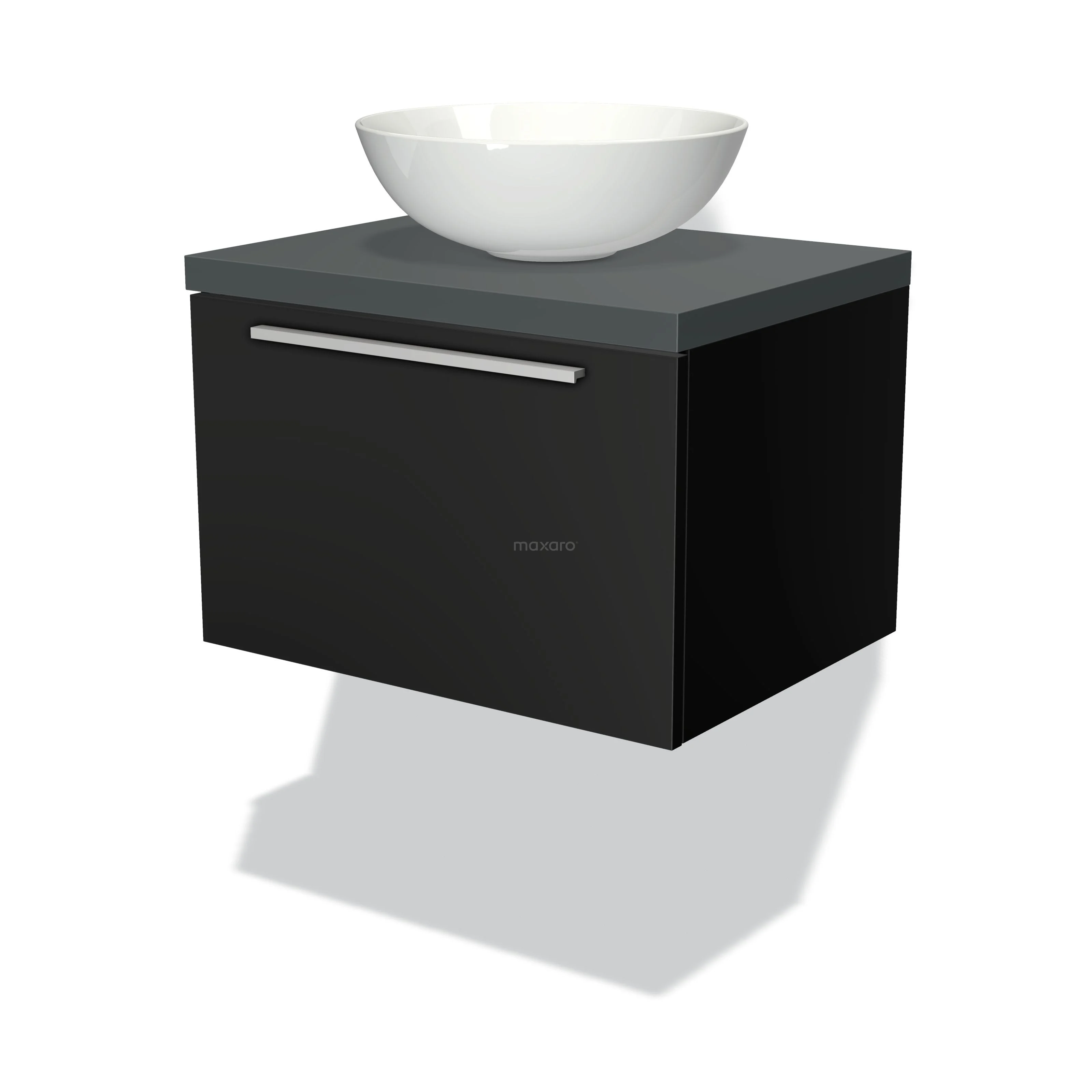 Modulo Plato Badmöbel mit Aufsatzwaschbecken | 60 cm Matt Schwarz Flach front Dunkelgrau blatt 1 Schublade