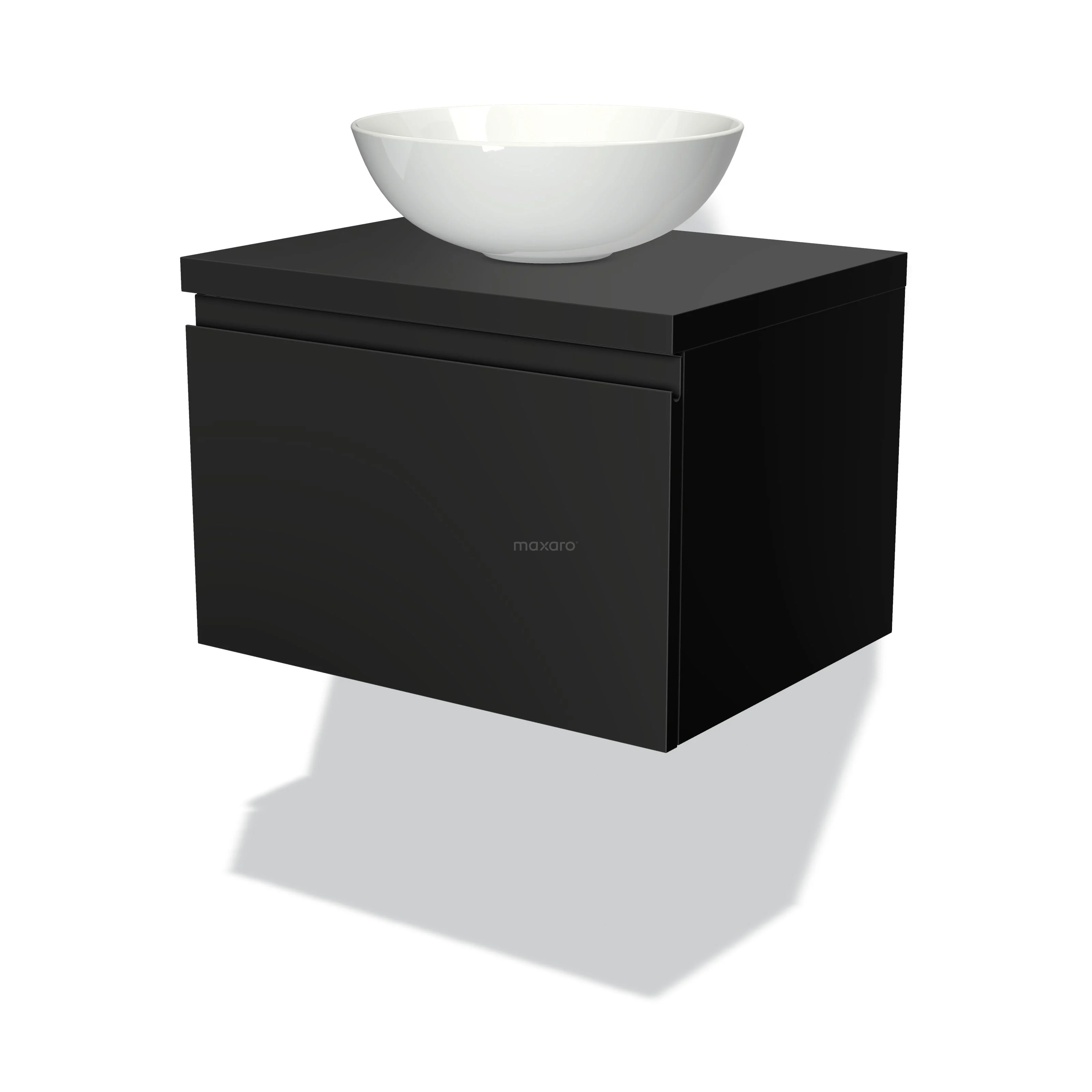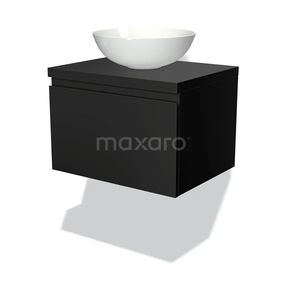 Modulo Plato Badmöbel mit Aufsatzwaschbecken | 60 cm Matt Schwarz Grifflos front Matt Schwarz blatt 1 Schublade