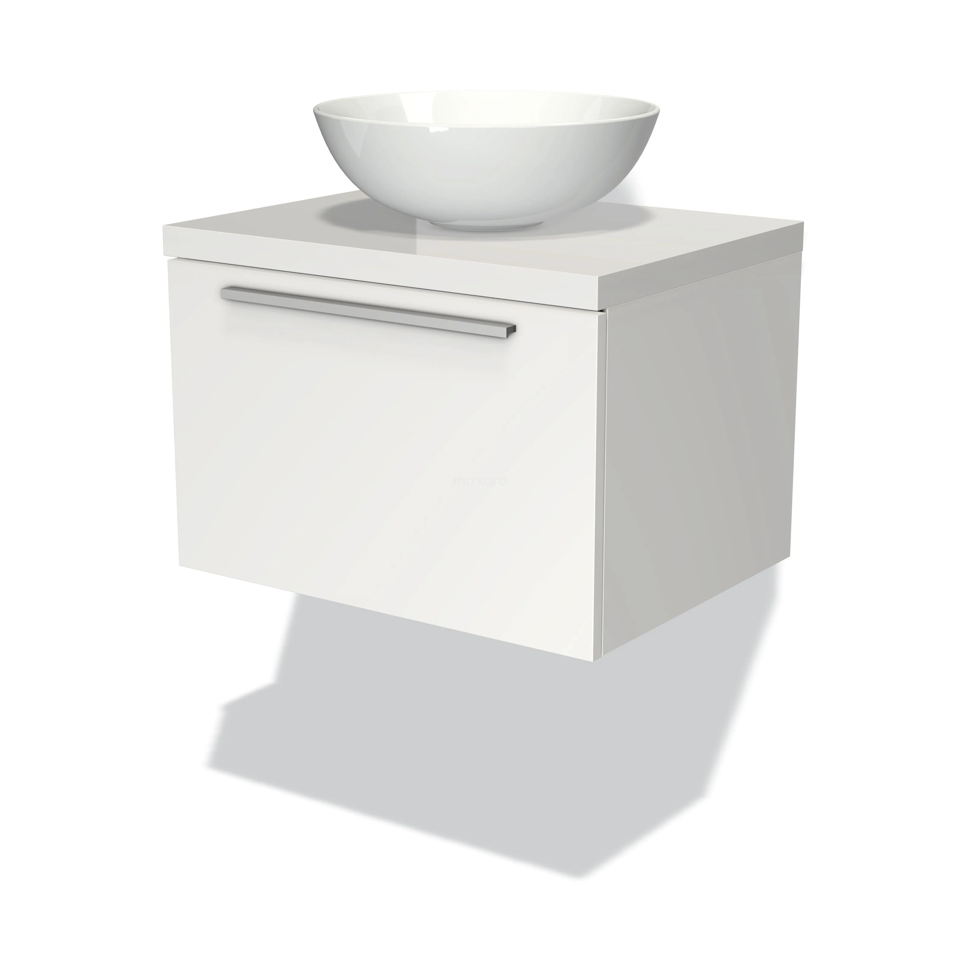 Modulo Plato Badmöbel mit Aufsatzwaschbecken | 60 cm Matt Weiß Flach front Hochglanz Weiß blatt 1 Schublade