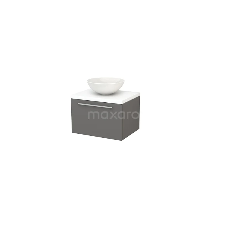 Modulo+ Plato Badmöbel mit Aufsatzwaschbecken | 60 cm Matt Weiß Flach front Matt Weiß blatt 1 Schublade