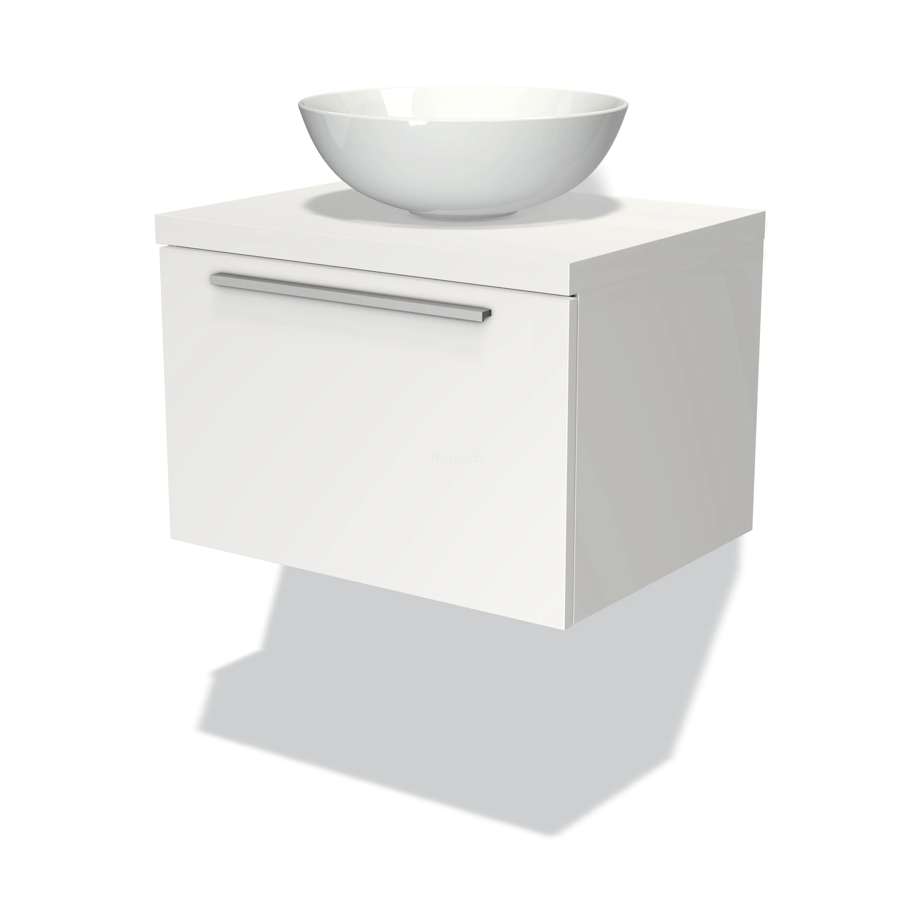 Modulo Plato Badmöbel mit Aufsatzwaschbecken | 60 cm Matt Weiß Flach front Matt Weiß blatt 1 Schublade