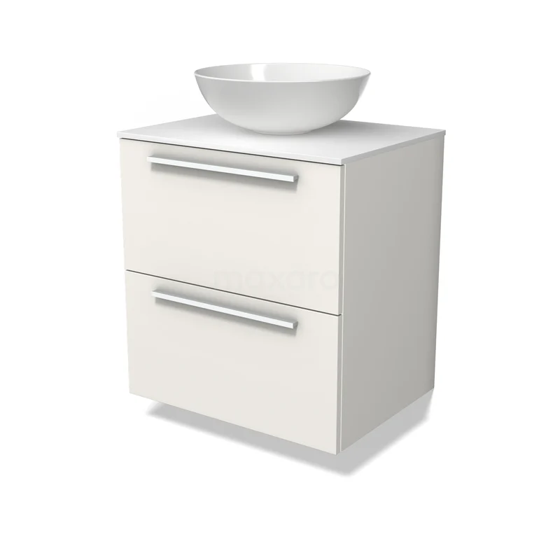 Modulo Plato Badmöbel mit Aufsatzwaschbecken | 60 cm Matt Weiß Flach front Solid Surface blatt 2 übereinanderliegende Schubladen