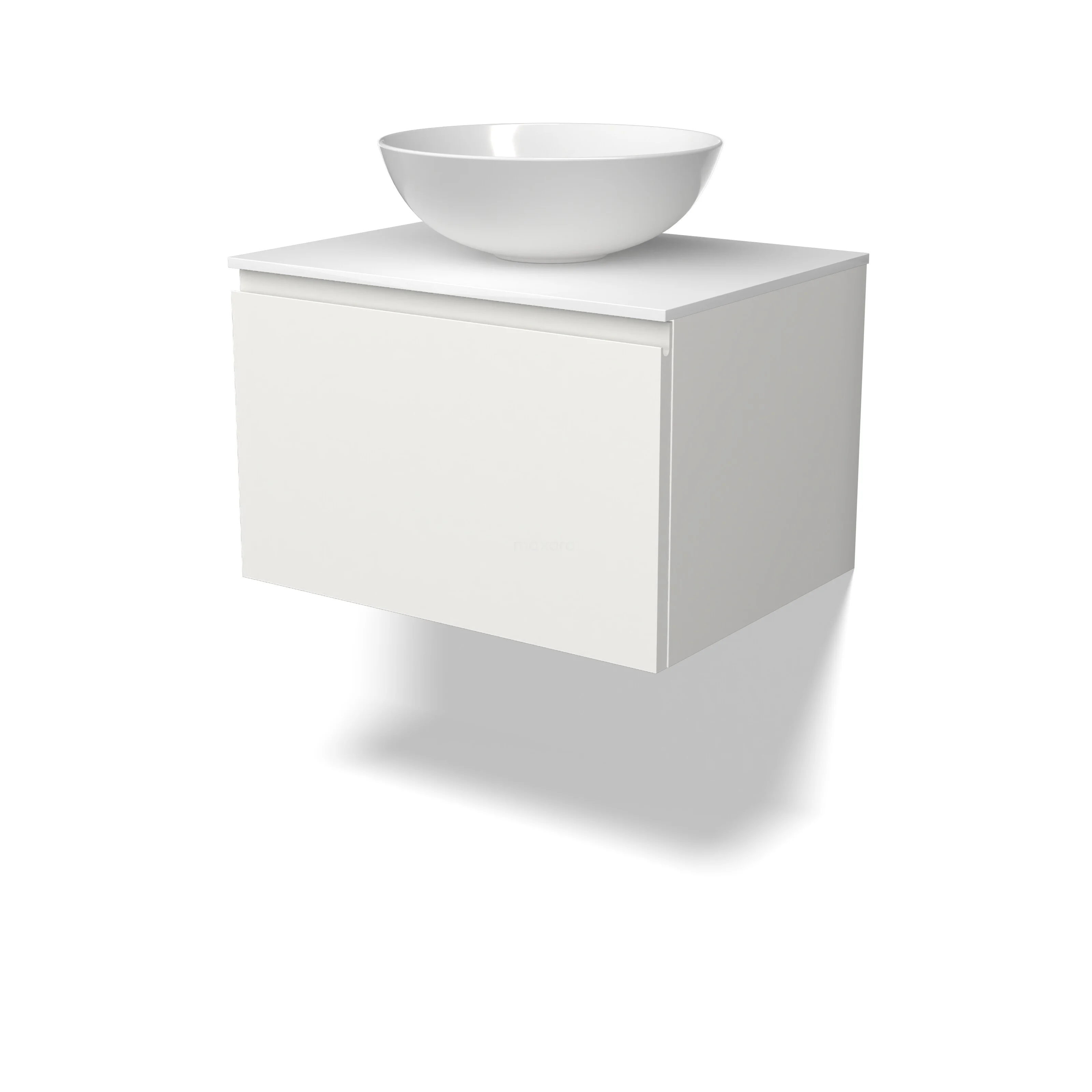 Modulo Plato Badmöbel mit Aufsatzwaschbecken | 60 cm Matt Weiß Grifflos front Solid Surface blatt 1 Schublade
