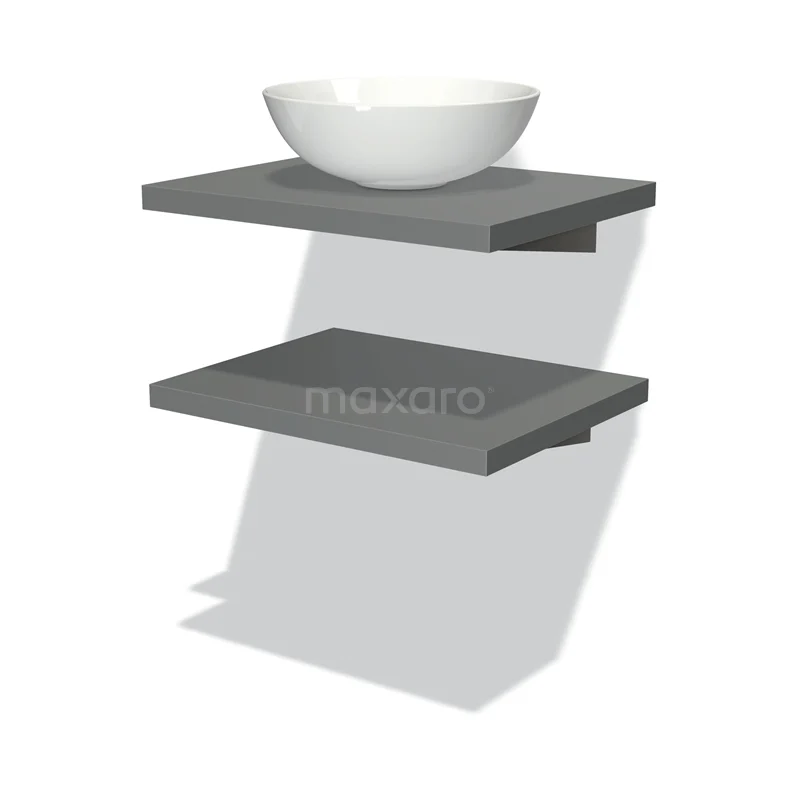 Modulo Plato Badmöbel mit Aufsatzwaschbecken | 60 cm Mittelgrau front Mittelgrau blatt 2 Waschtischplatten