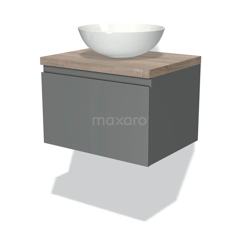 Modulo Plato Badmöbel mit Aufsatzwaschbecken | 60 cm Mittelgrau Grifflos front Eiche blatt 1 Schublade