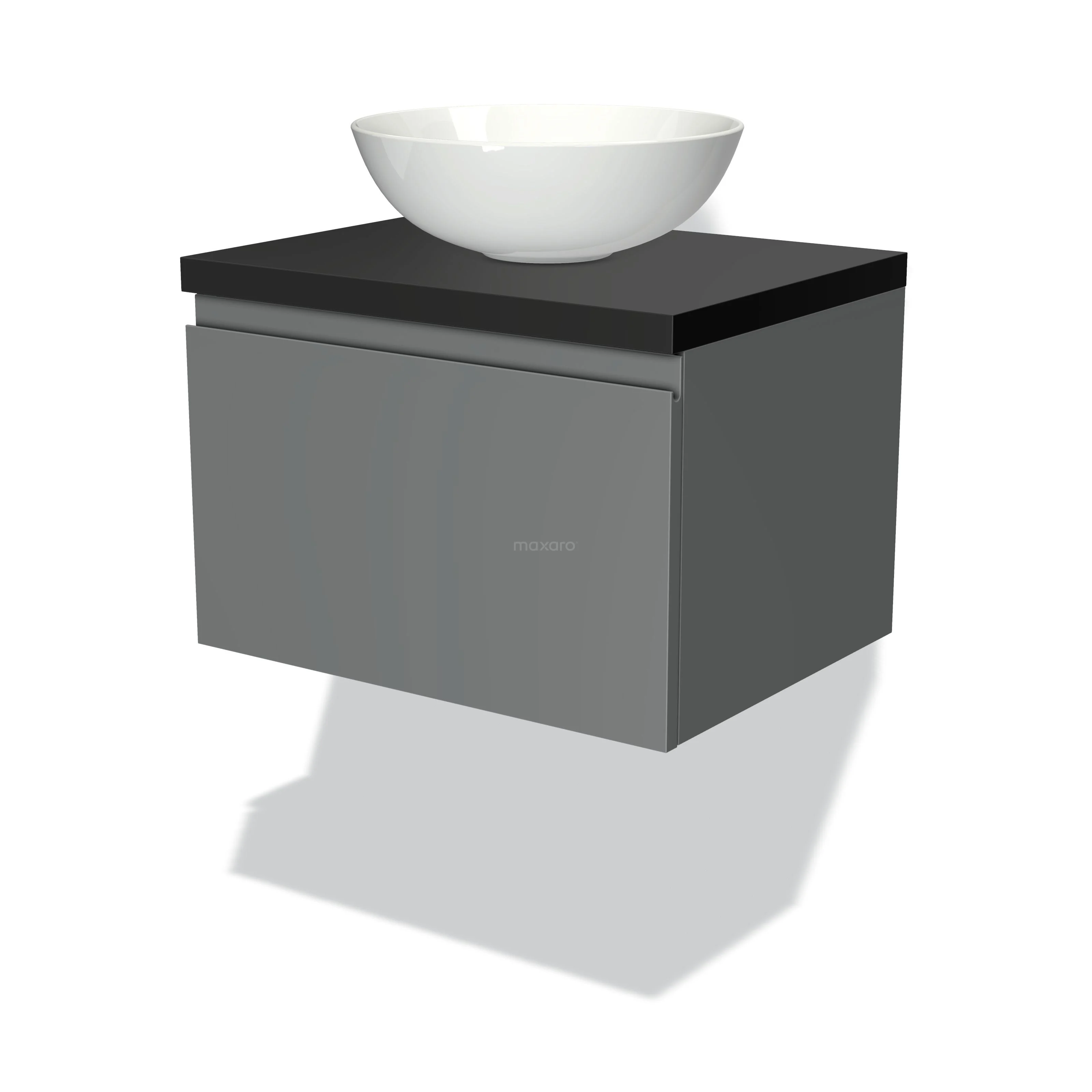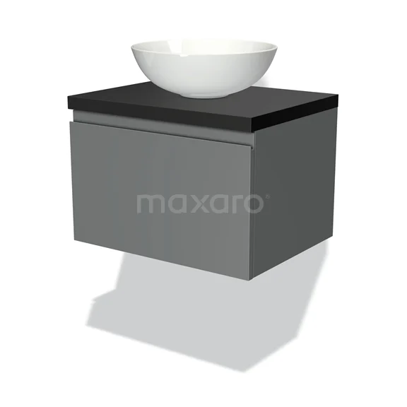 Modulo Plato Badmöbel mit Aufsatzwaschbecken | 60 cm Mittelgrau Grifflos front Matt Schwarz blatt 1 Schublade