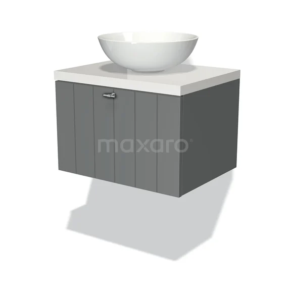 Modulo Plato Badmöbel mit Aufsatzwaschbecken | 60 cm Mittelgrau Lamelle front Hochglanz Weiß blatt 1 Schublade