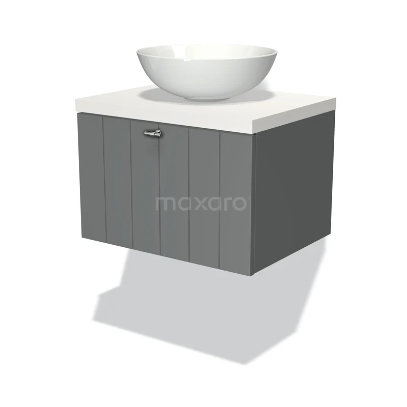 Modulo Plato Badmöbel mit Aufsatzwaschbecken | 60 cm Mittelgrau Lamelle front Matt Weiß blatt 1 Schublade