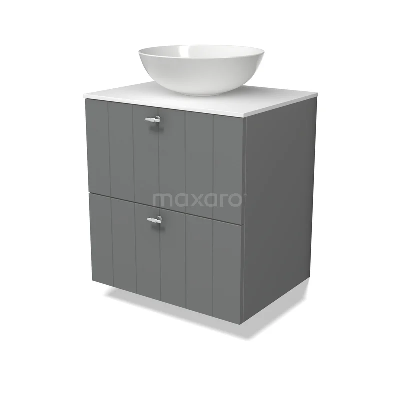 Modulo Plato Badmöbel mit Aufsatzwaschbecken | 60 cm Mittelgrau Lamelle front Solid Surface blatt 2 übereinanderliegende Schubladen