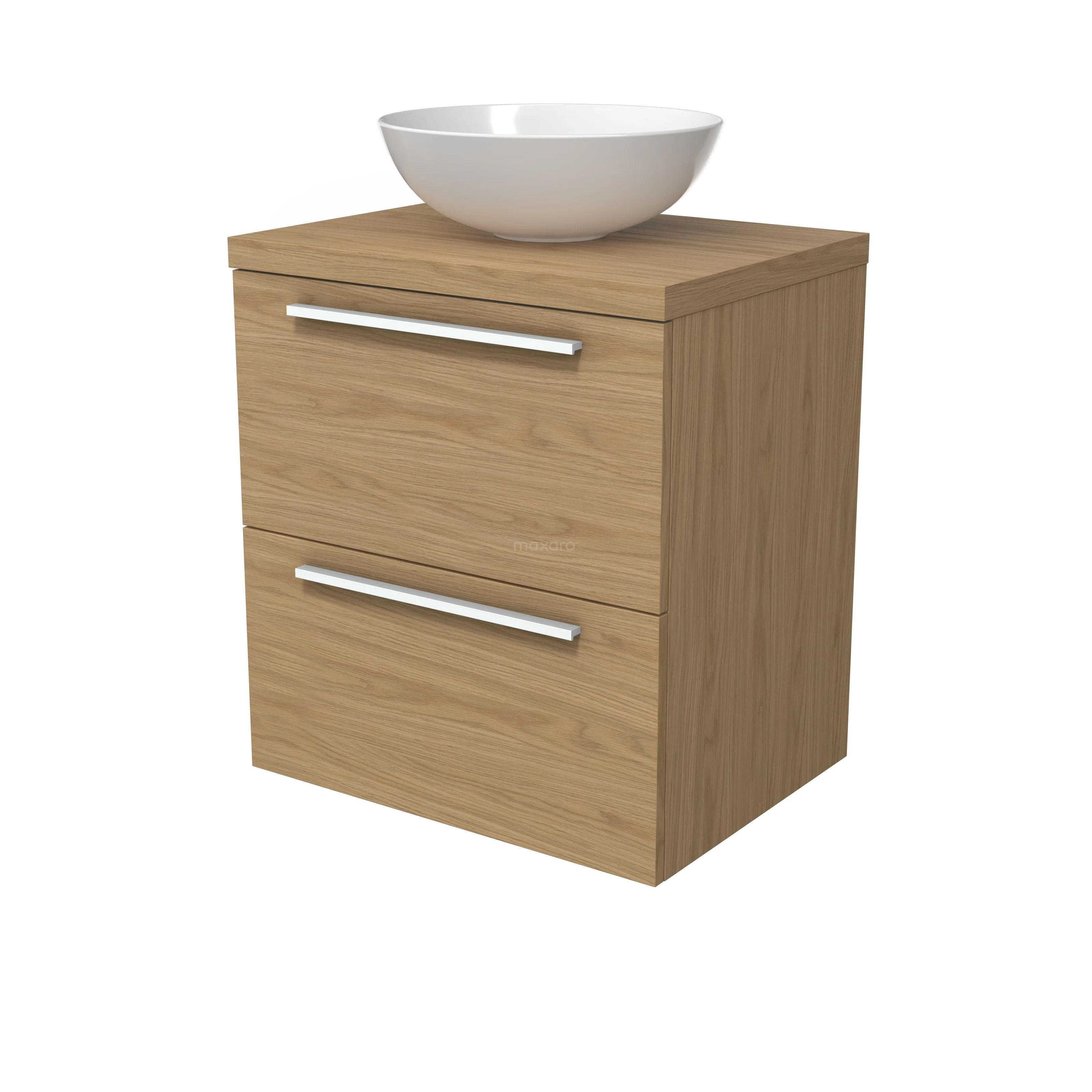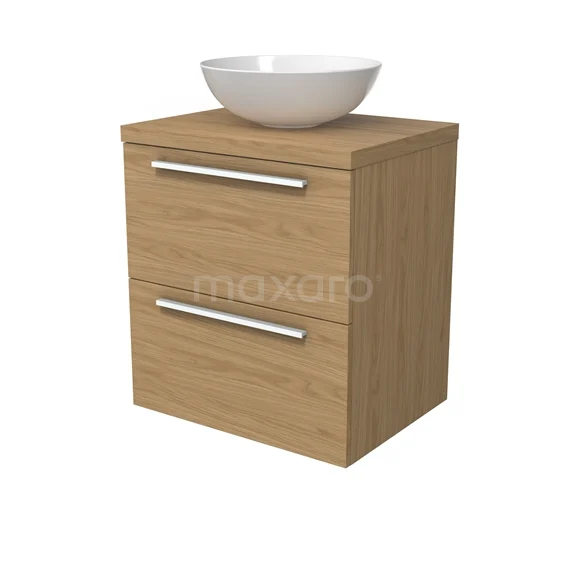 Modulo Plato Badmöbel mit Aufsatzwaschbecken | 60 cm Natürliches Furnier Flach front Natürliches Furnier blatt 2 übereinanderliegende Schubladen