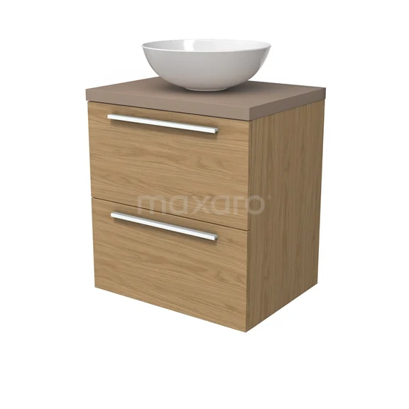 Modulo Plato Badmöbel mit Aufsatzwaschbecken | 60 cm Natürliches Furnier Flach front Taupe blatt 2 übereinanderliegende Schubladen