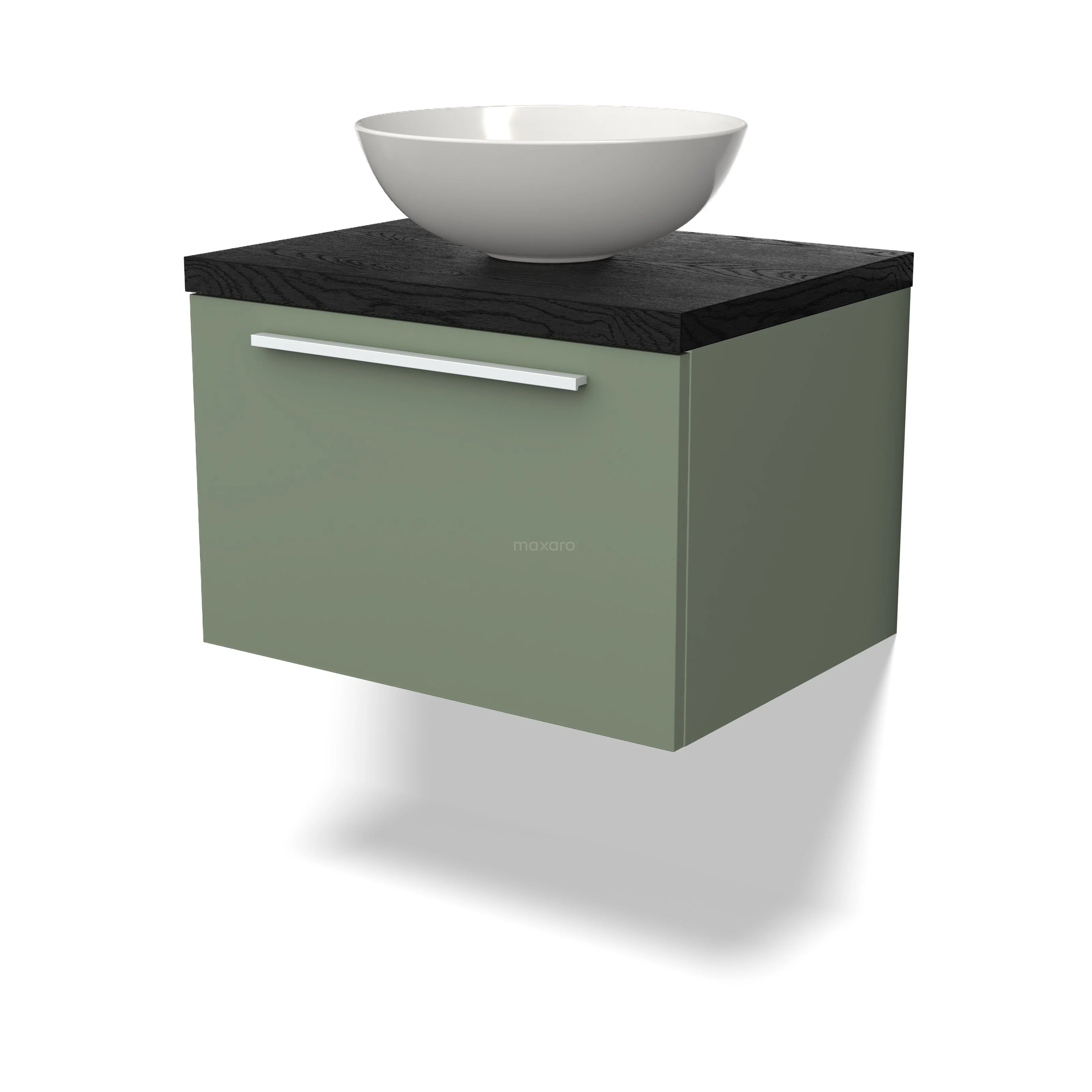Modulo Plato Badmöbel mit Aufsatzwaschbecken | 60 cm Salbeigrün Flach front Schwarze Eiche blatt 1 Schublade