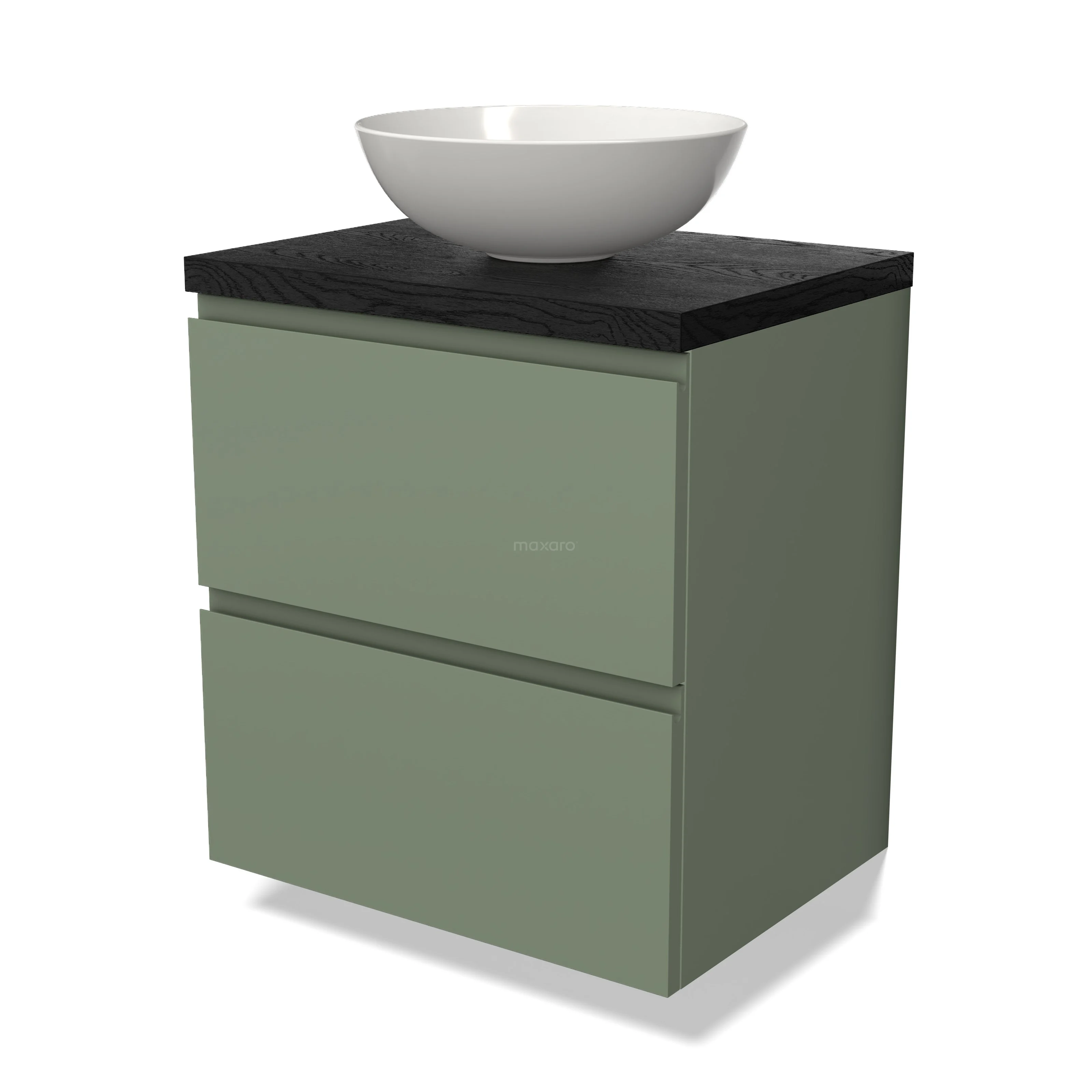 Modulo Plato Badmöbel mit Aufsatzwaschbecken | 60 cm Salbeigrün Grifflos front Schwarze Eiche blatt 2 übereinanderliegende Schubladen