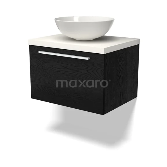 Modulo Plato Badmöbel mit Aufsatzwaschbecken | 60 cm Schwarze Eiche Flach front Matt Weiß blatt 1 Schublade