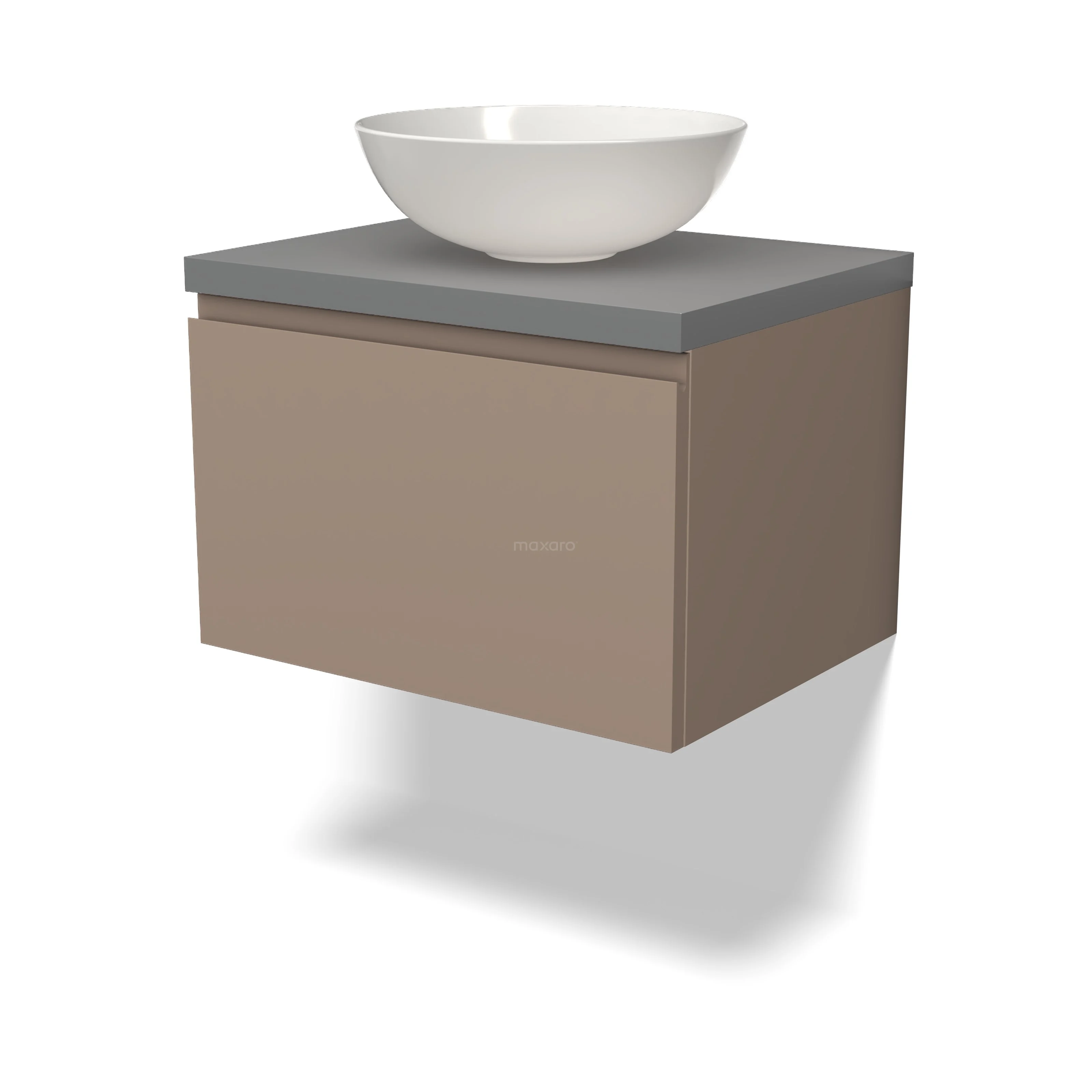 Modulo Plato Badmöbel mit Aufsatzwaschbecken | 60 cm Taupe Grifflos front Mittelgrau blatt 1 Schublade