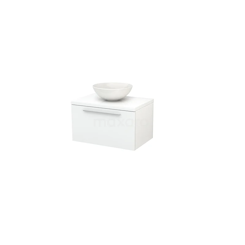 Modulo+ Plato Badmöbel mit Aufsatzwaschbecken | 70 cm Hochglanz Weiß Flach front Hochglanz Weiß blatt 1 Schublade