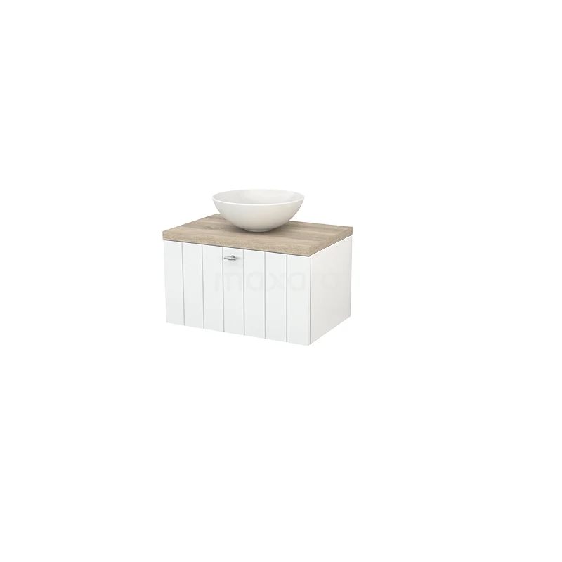 Modulo+ Plato Badmöbel mit Aufsatzwaschbecken | 70 cm Hochglanz Weiß Lamelle front Eiche blatt 1 Schublade