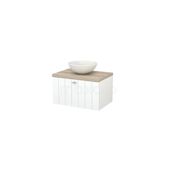 Modulo+ Plato Badmöbel mit Aufsatzwaschbecken | 70 cm Matt Weiß Lamelle front Eiche blatt 1 Schublade