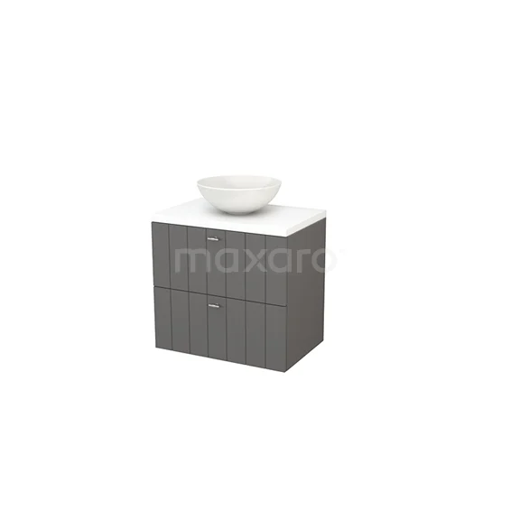 Modulo+ Plato Badmöbel mit Aufsatzwaschbecken | 70 cm Matt Weiß Lamelle front Matt Weiß blatt 2 übereinanderliegende Schubladen