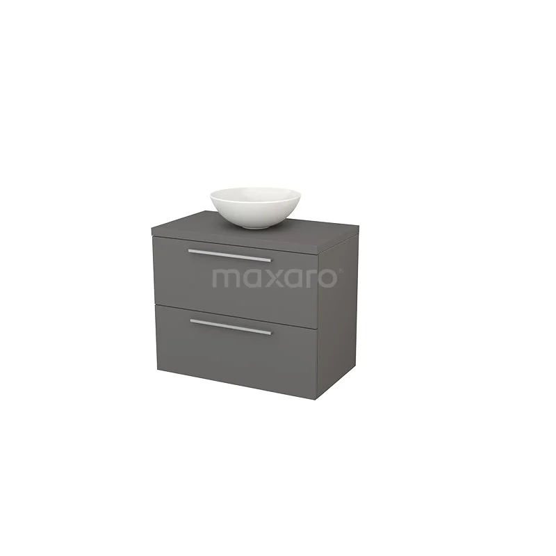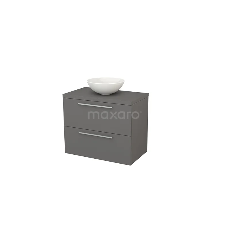 Modulo+ Plato Badmöbel mit Aufsatzwaschbecken | 80 cm Basalt Flach front Basalt blatt 2 übereinanderliegende Schubladen