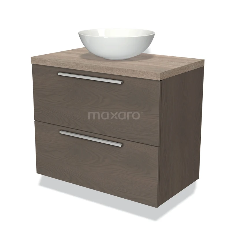 Modulo Plato Badmöbel mit Aufsatzwaschbecken | 80 cm Dunkelbraune Eiche Flach front Eiche blatt 2 übereinanderliegende Schubladen