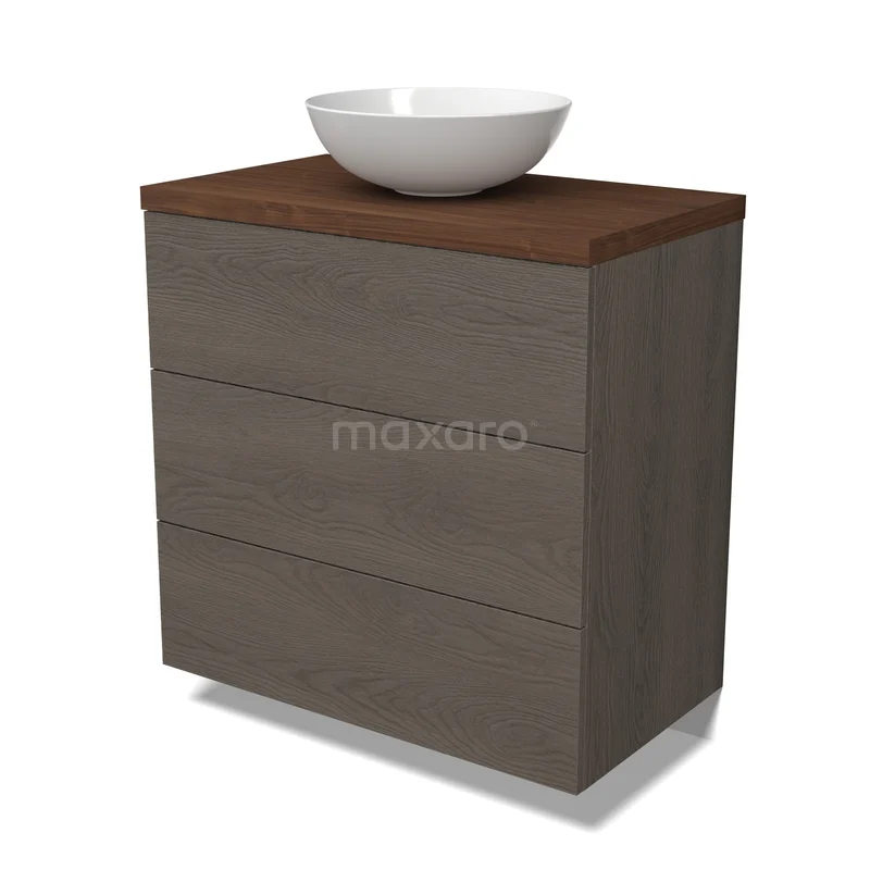 Modulo Plato Badmöbel mit Aufsatzwaschbecken | 80 cm Dunkelbraune Eiche Flach front Walnuss blatt 3 Schubladen