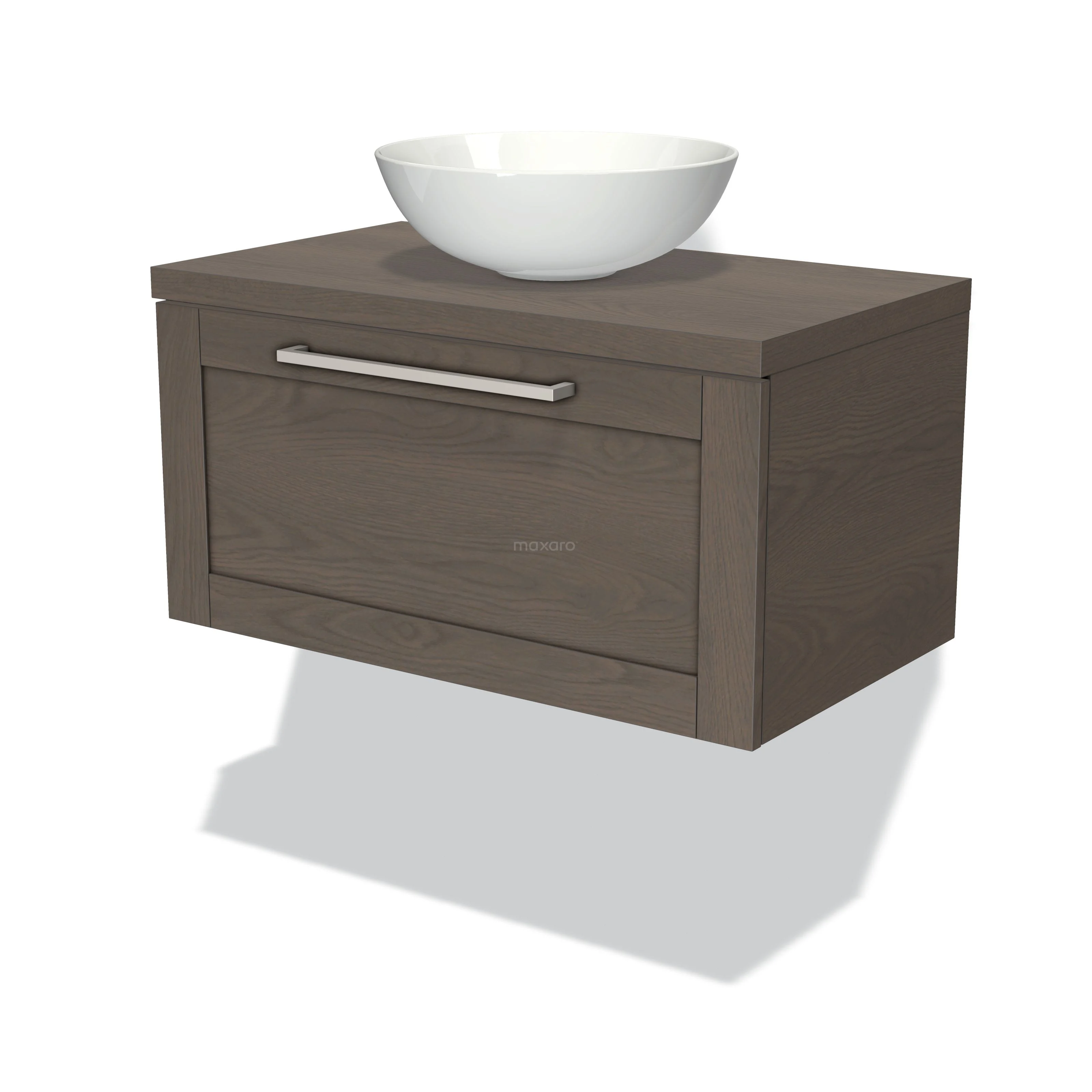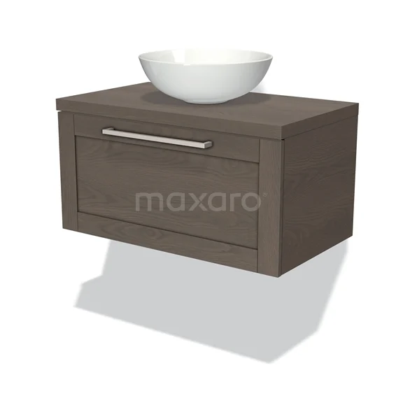Modulo Plato Badmöbel mit Aufsatzwaschbecken | 80 cm Dunkelbraune Eiche Rahmen front Dunkelbraune Eiche blatt 1 Schublade