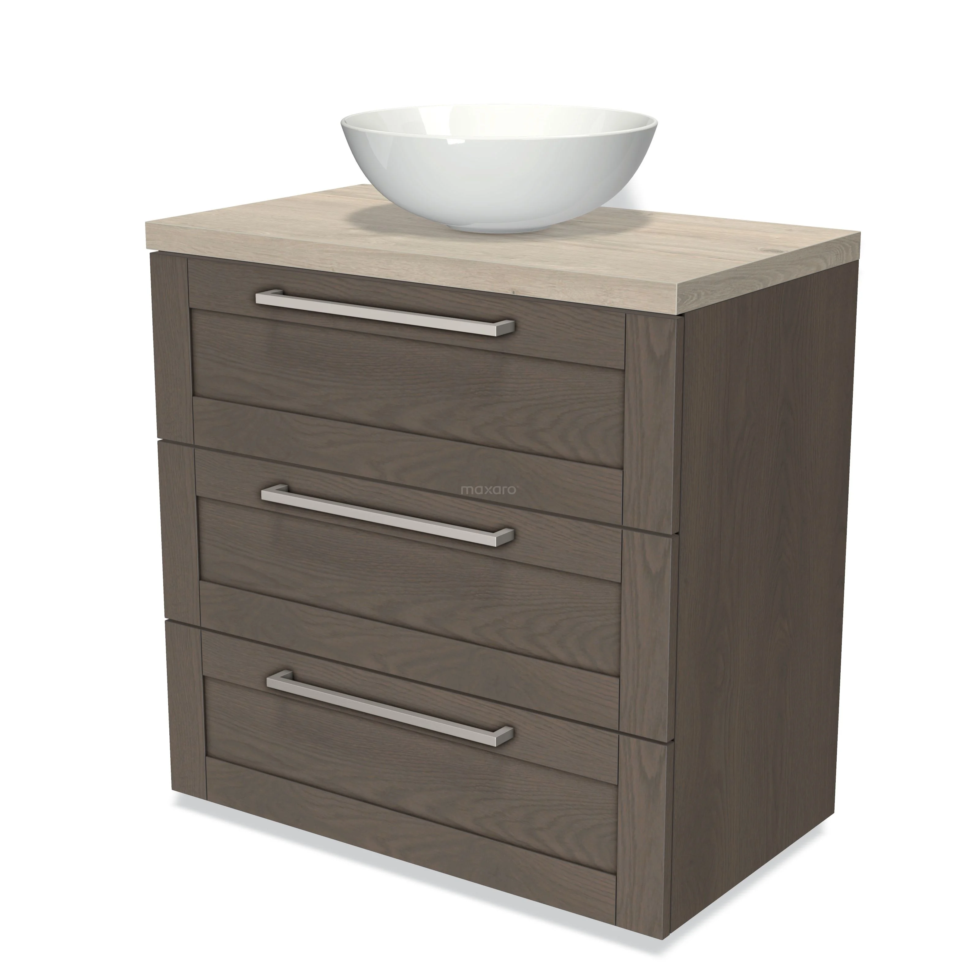 Modulo Plato Badmöbel mit Aufsatzwaschbecken | 80 cm Dunkelbraune Eiche Rahmen front Hellgraue Eiche blatt 3 Schubladen