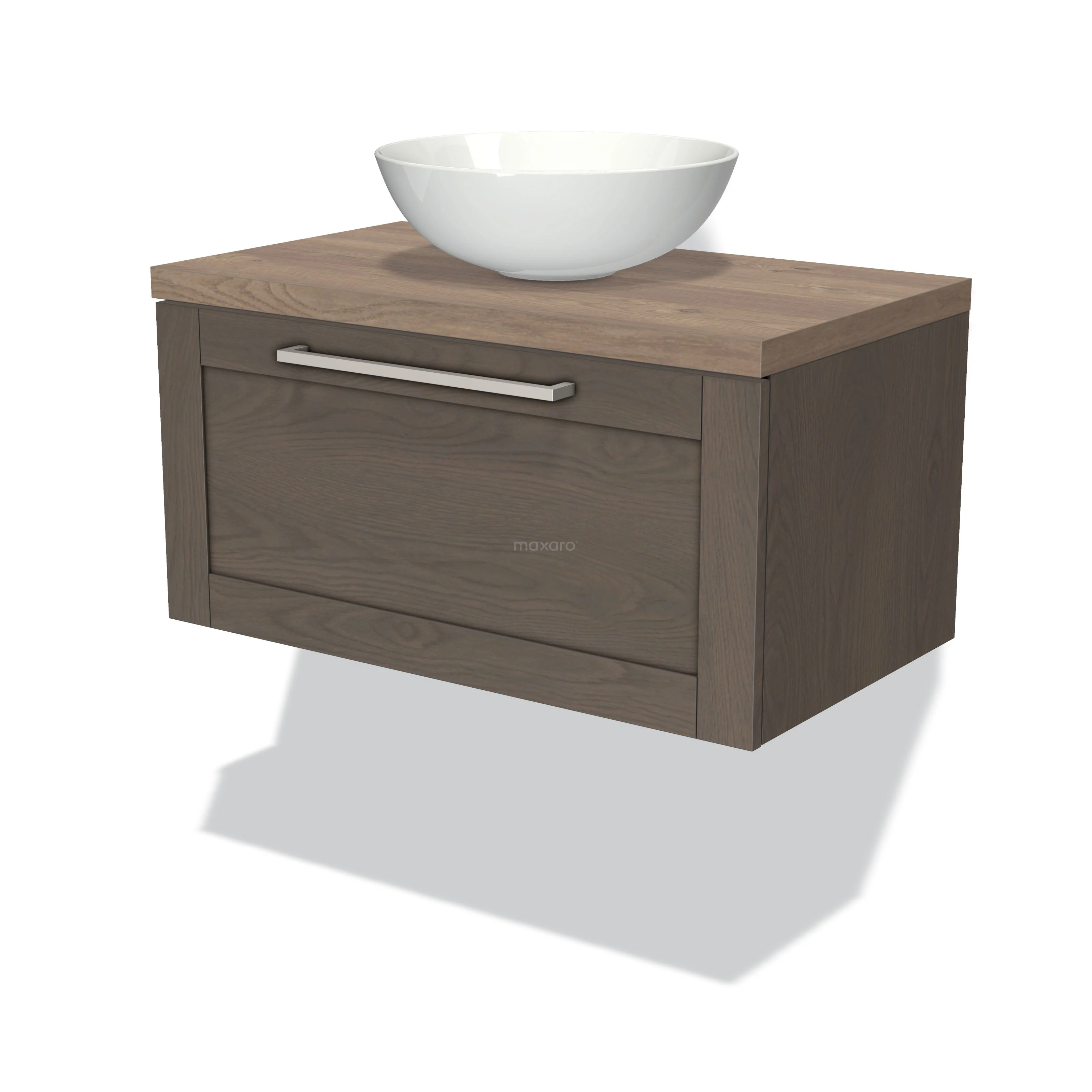 Modulo Plato Badmöbel mit Aufsatzwaschbecken | 80 cm Dunkelbraune Eiche Rahmen front Mittelbraune Eiche blatt 1 Schublade
